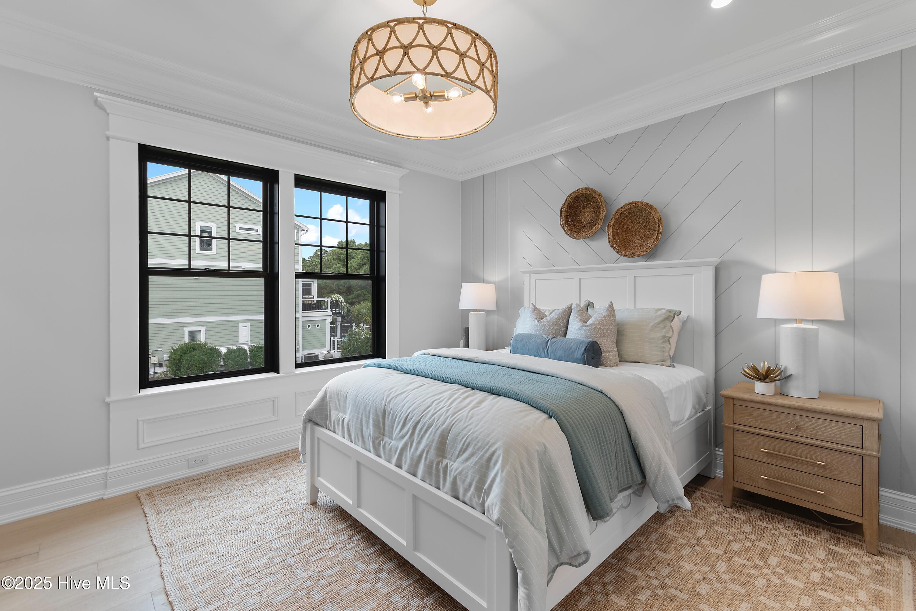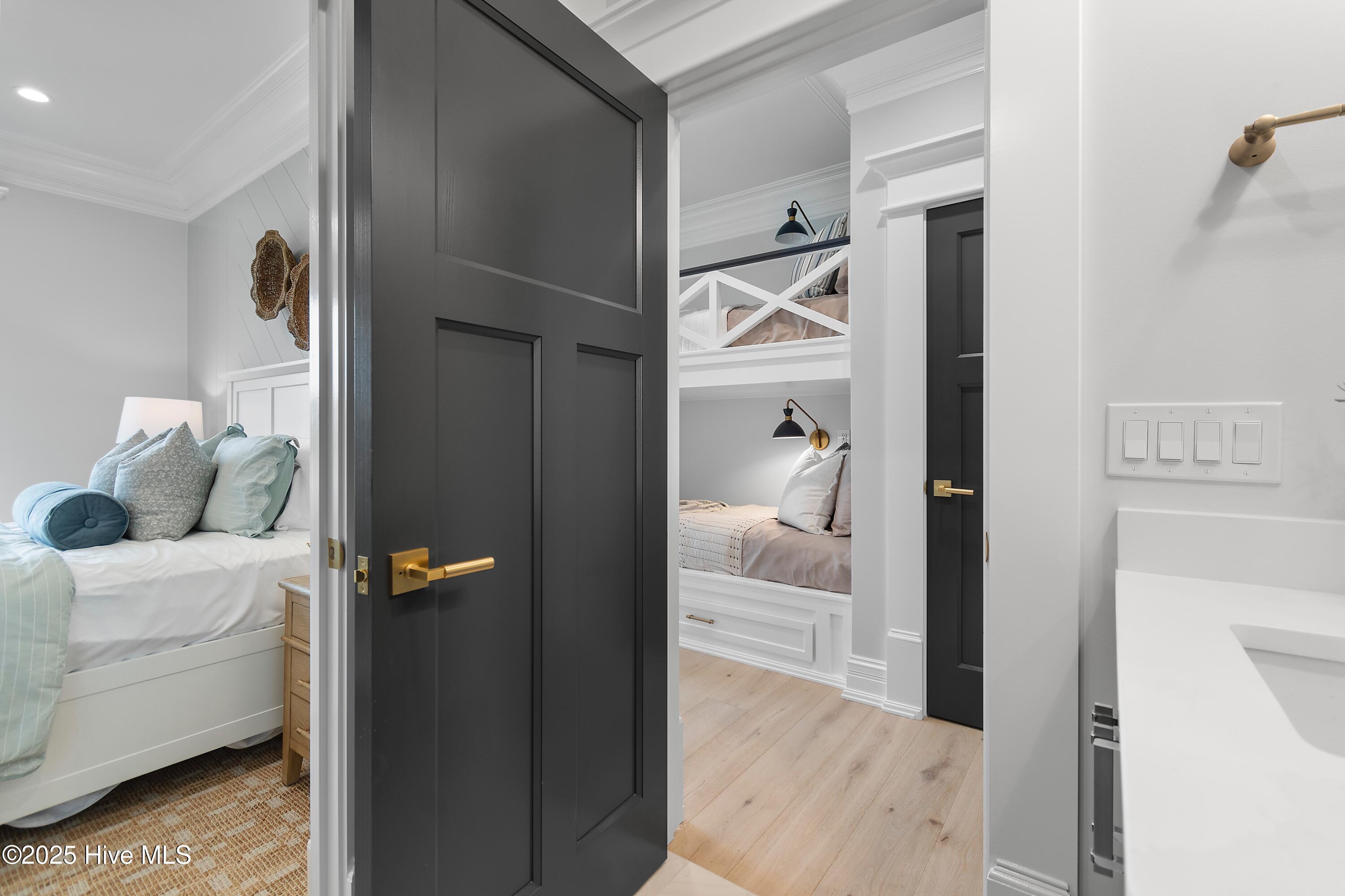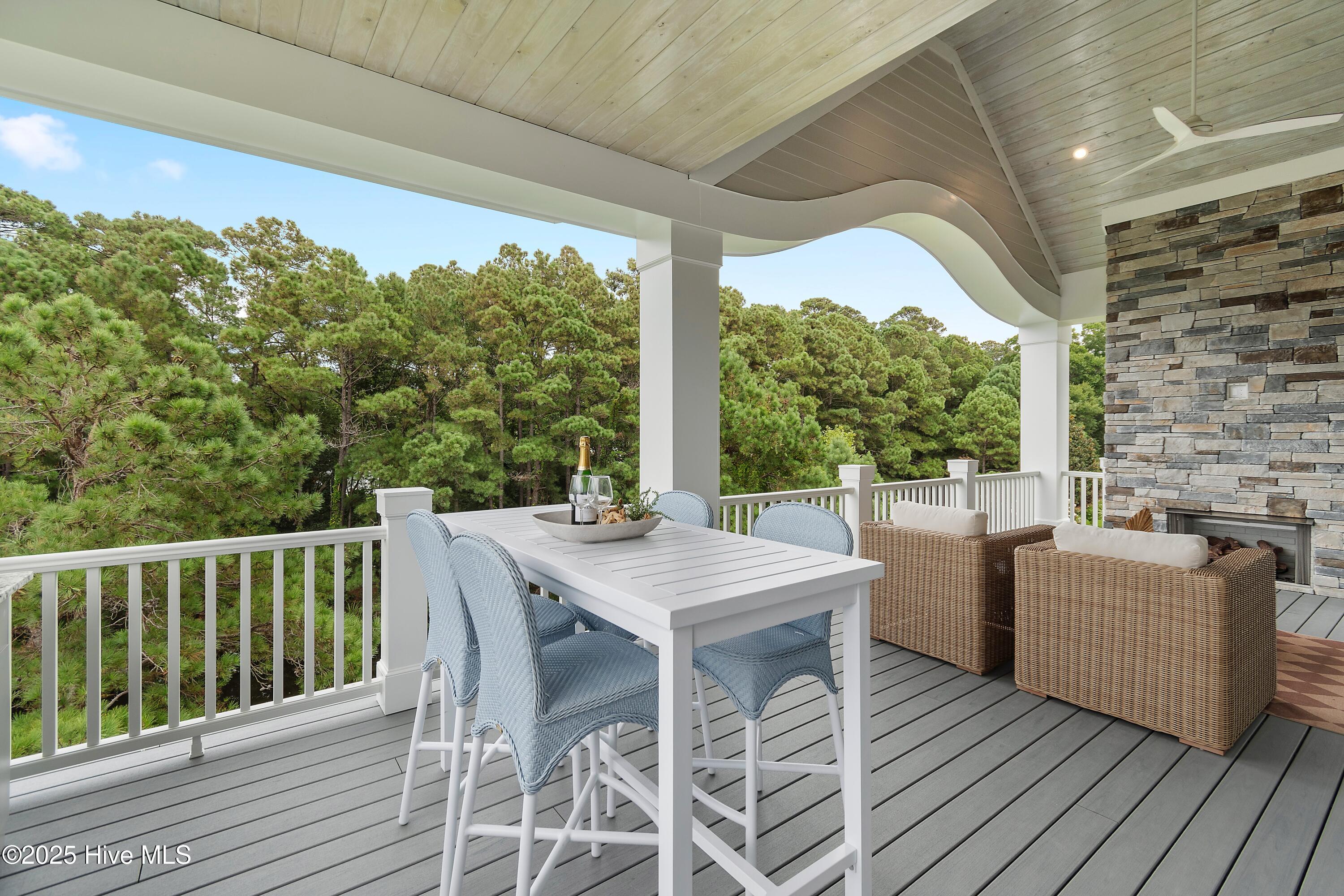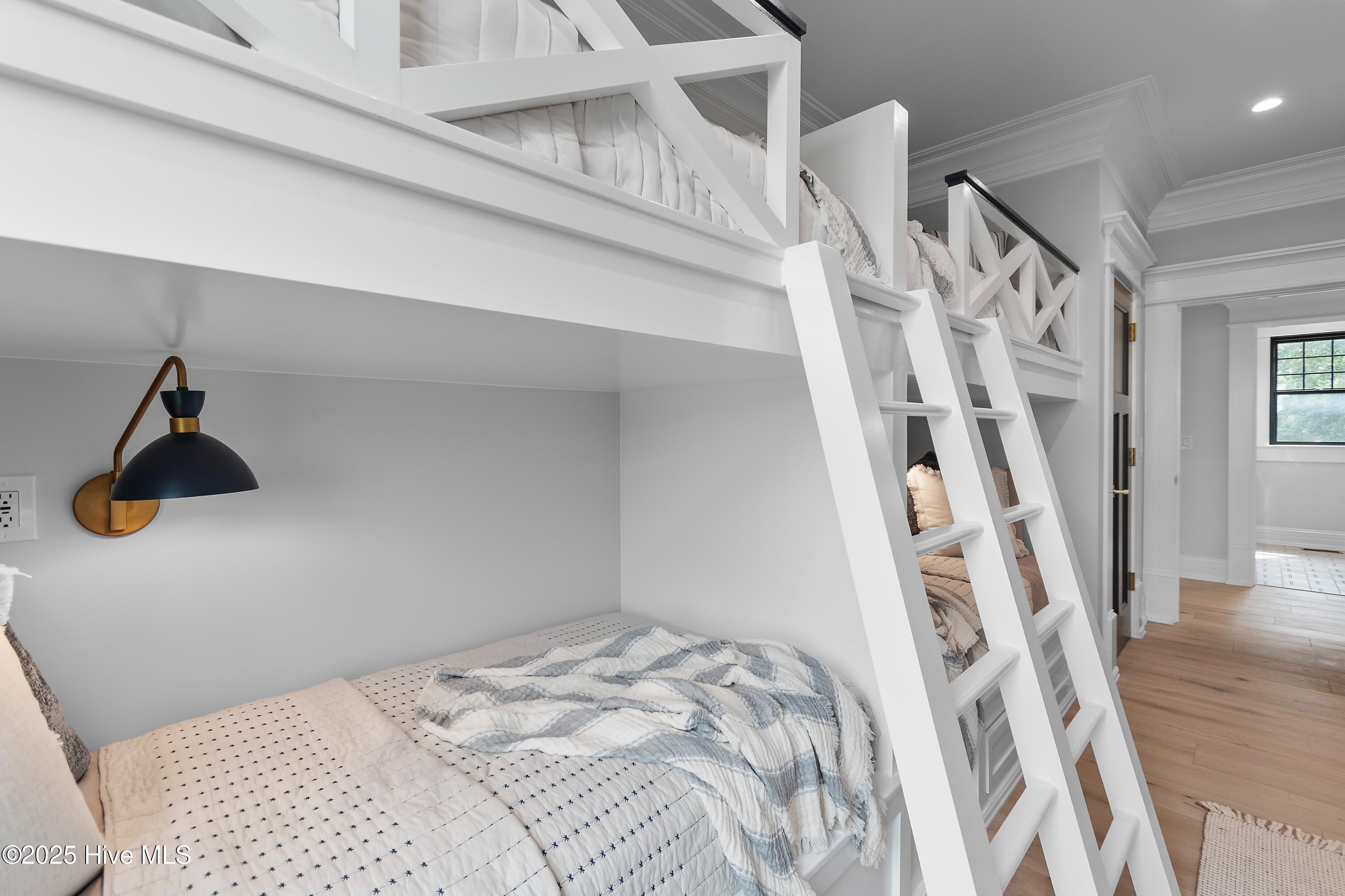 The second floor includes a welcoming entry with a versatile office space. The master bedroom serves as a spacious and elegant retreat featuring a beautiful beam ceiling, accompanied by a large master bath with luxurious amenities and a walk-in closet offering ample storage. Additionally, there is a fun and functional bunk area with built-in beds for additional sleeping arrangements. Bedroom number three is well-appointed with a walk-in closet. Completing this floor is an expansive rear deck, perfect for relaxing and entertaining. The third floor boasts a great room with a fireplace and a diamond-shaped coffered ceiling, creating an impressive space for gathering. Adjacent is a sitting room with a built-in wet bar and wine cooler, perfect for hosting and enjoying refreshments. The dining area provides an inviting space for meals and celebrations.