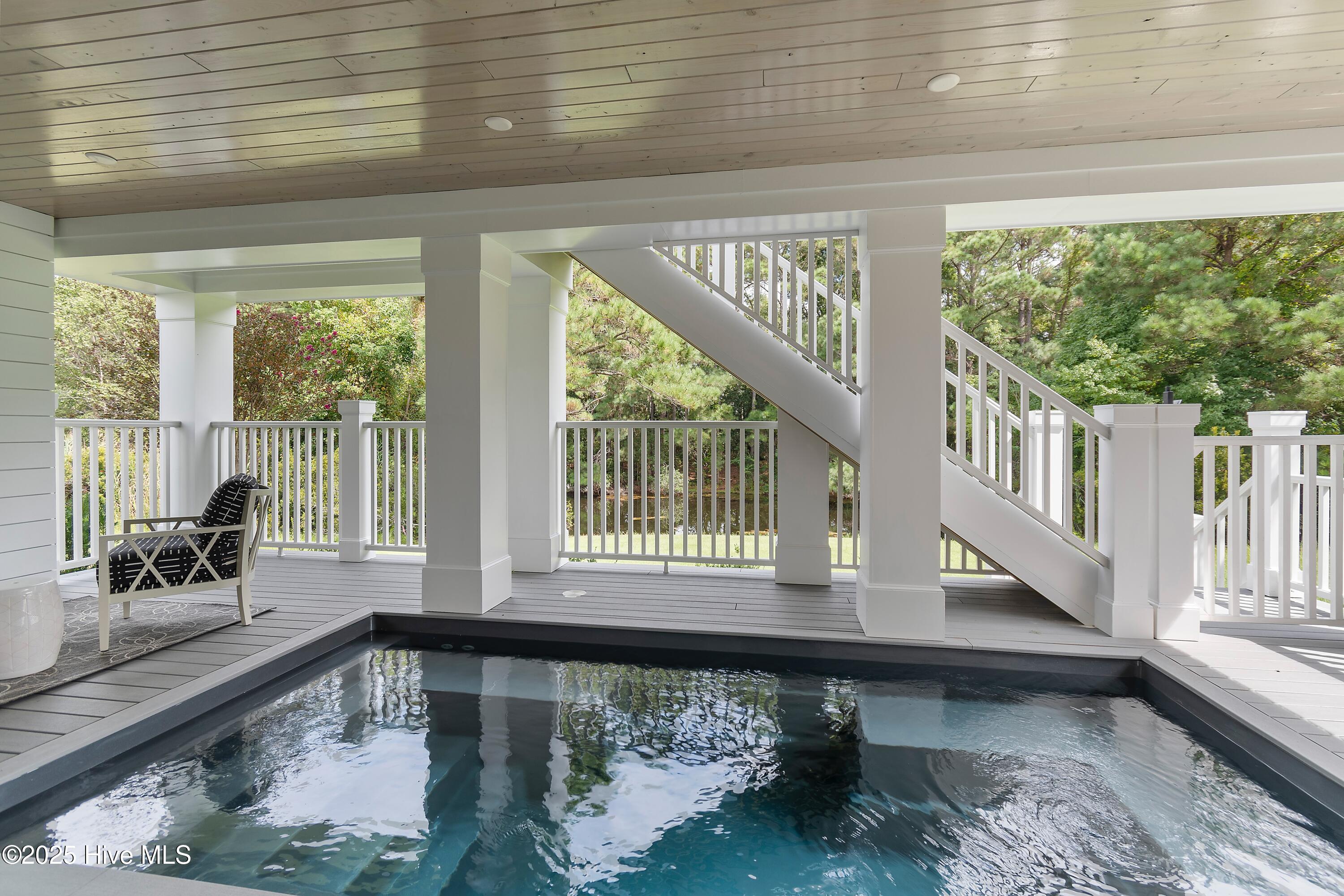 This premier homesite is on a street that fronts the Intracoastal Waterway. The first floor features a theater room, providing a dedicated space for cinematic enjoyment, perfect for family movie nights or entertaining guests. There is also a comfortable and private guest bedroom with an en-suite bathroom, ideal for visitors. Additionally, the rear patio offers a serene outdoor oasis for relaxation and enjoyment, featuring a plunge pool, fireplace, and screened-in porch.