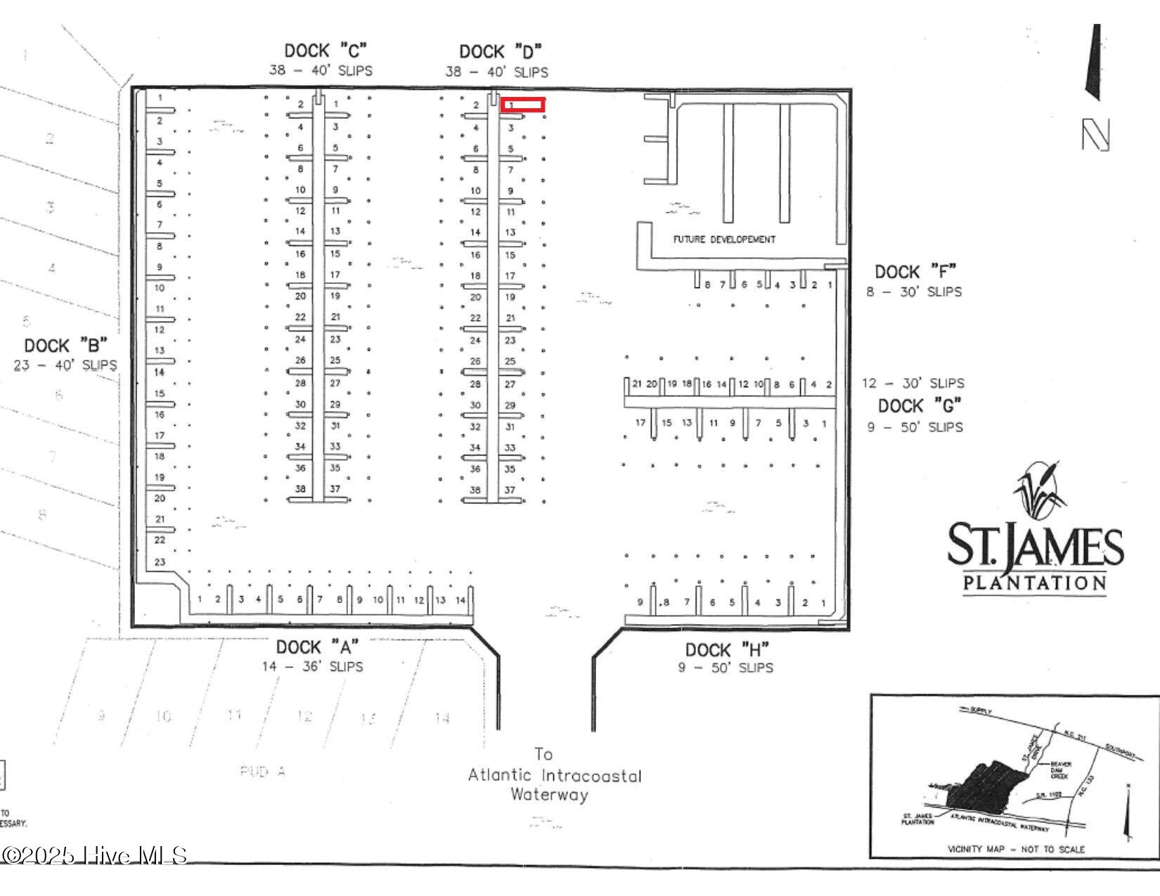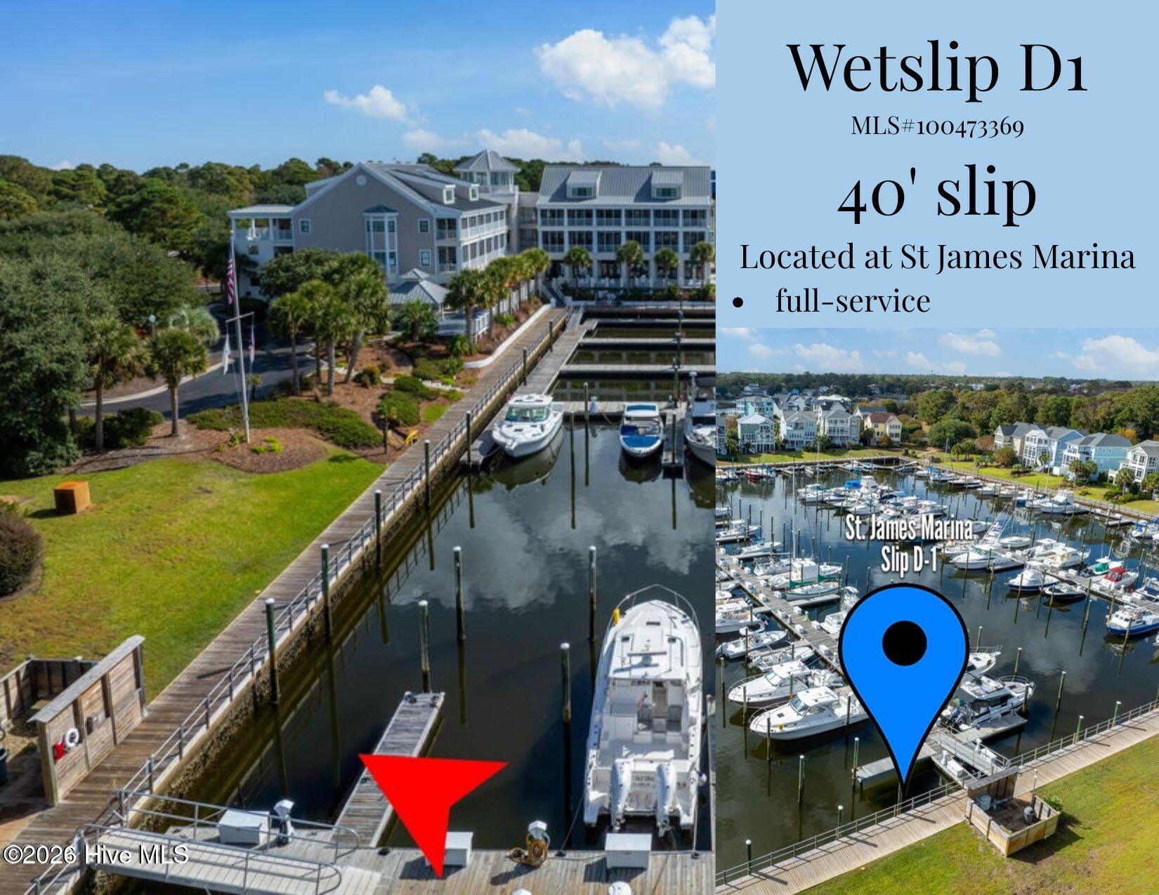 Rare opportunity to own one of the most conveniently located 40' wet slips in the full-service and well-protected St James Marina. This slip offers water, electric, and dock box. Just steps from the Beacon 315 Grill & Tiki Bar, as well as the parking lot, makes for convenient loading and unloading. St James Marina offers easy access to the Intracoastal Waterway and the Atlantic Ocean. It is not a requirement to own property in St James to purchase and own this convenient wet slip. Now, let's get out there and make some waves! Welcome to St James, The #1 Coastal Community in NC!