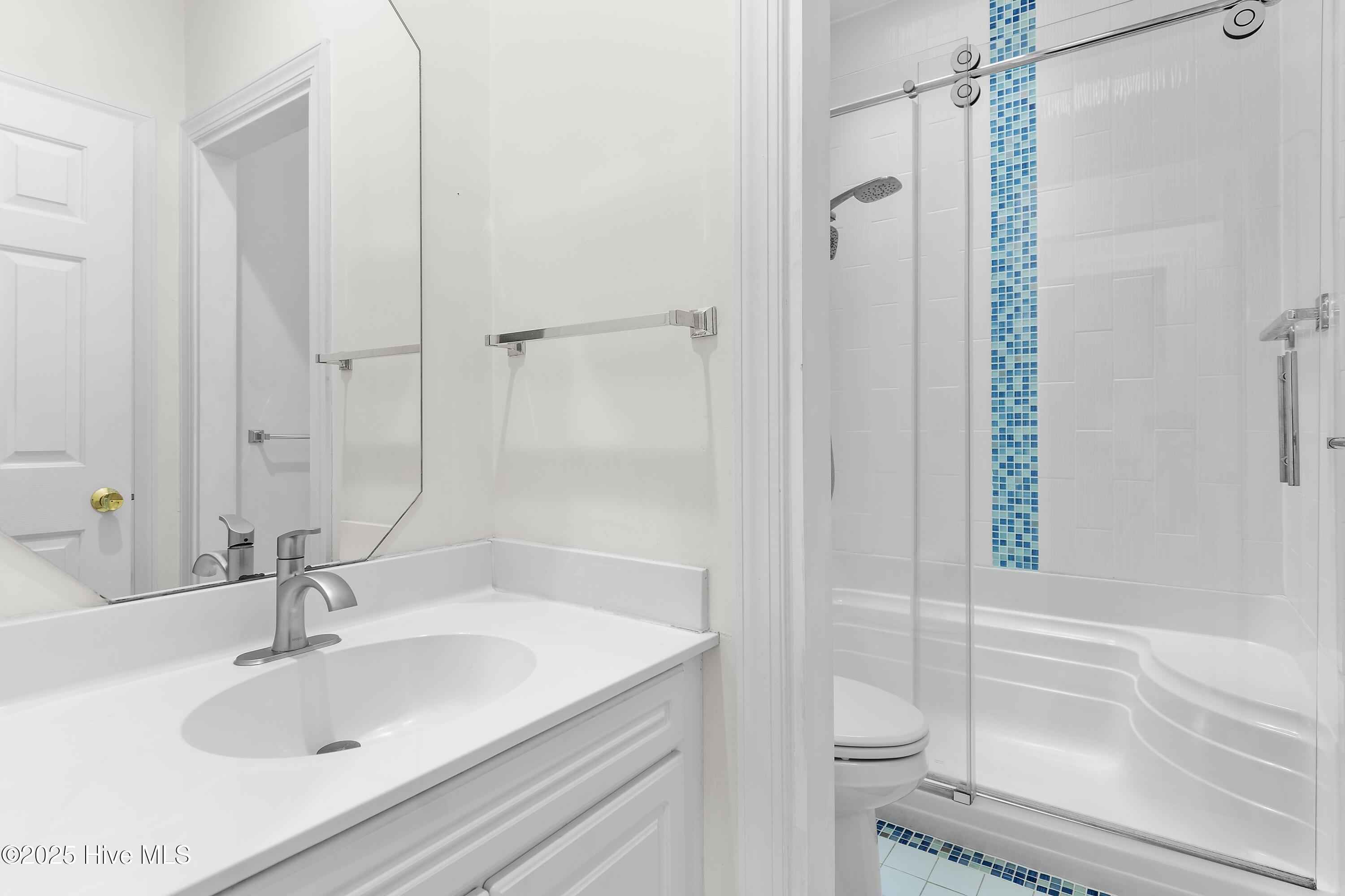 The recently updated owner's suite includes a tiled walk-in shower,modern 2 sink vanity with quartz countertop, luxury vinyl plank flooring, and convenient in-unit washer/dryer. A second bedroom features luxury vinyl flooring and an adjacent full bath with a new skylight to bring in natural light.