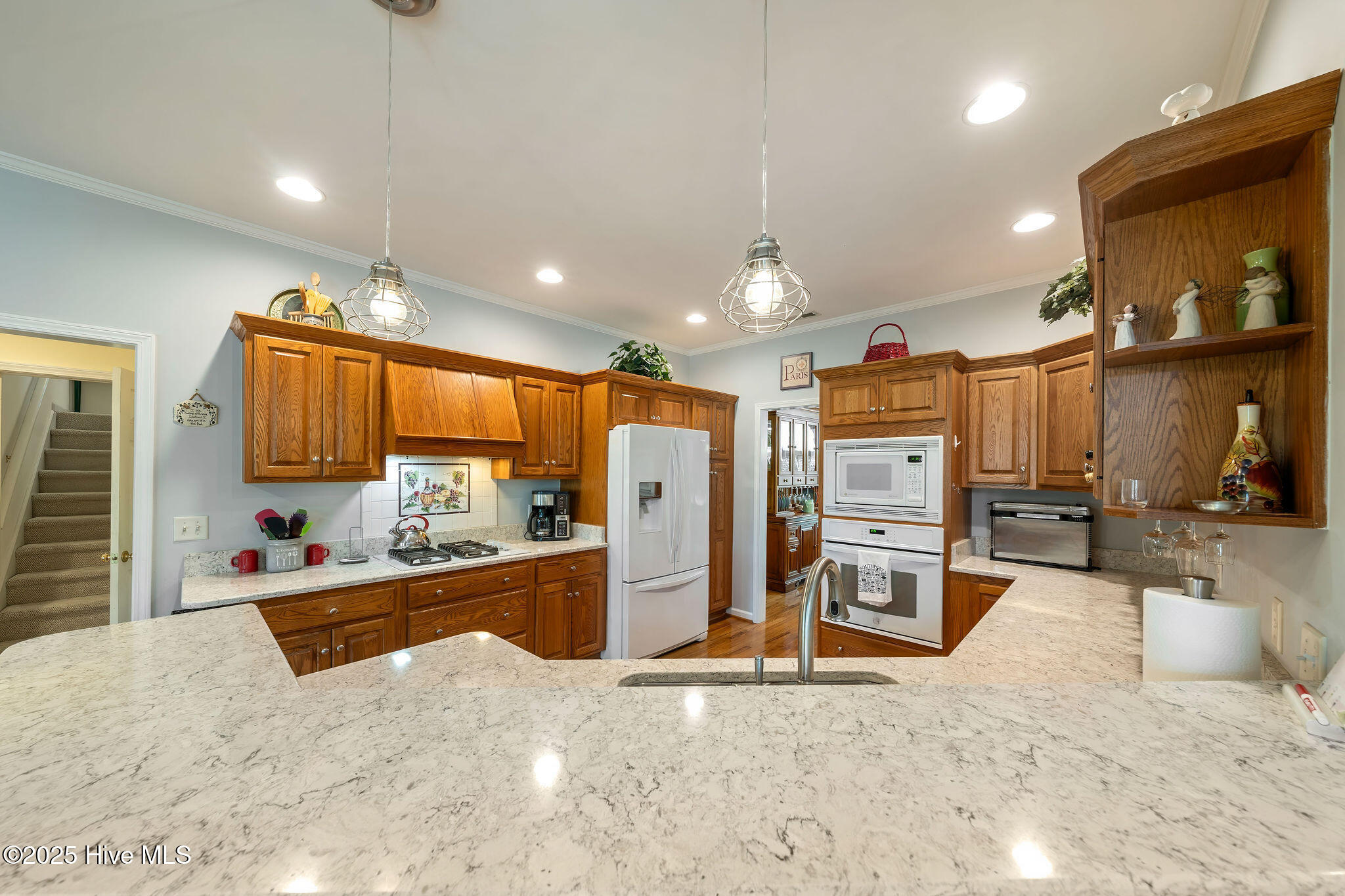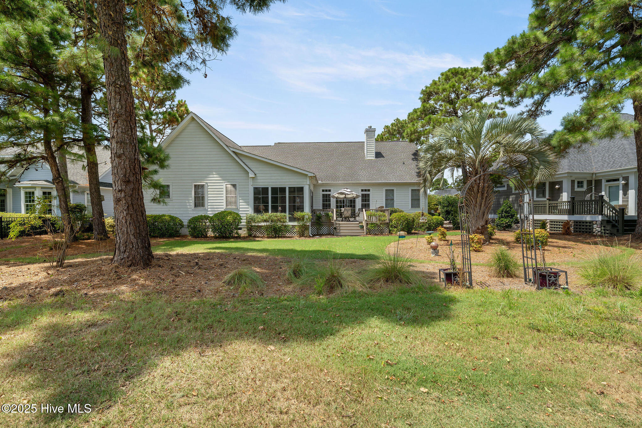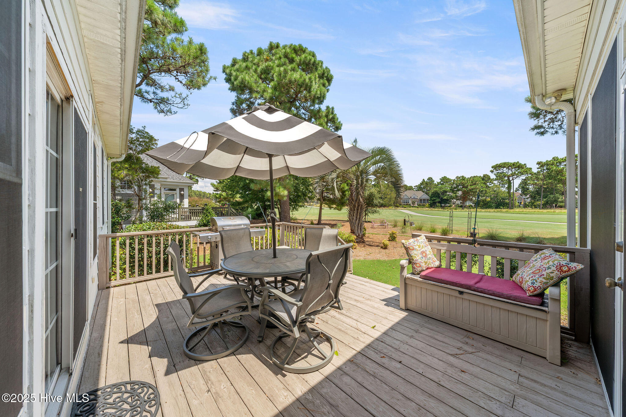 This beautifully maintained 3-bedroom, 2.5-bathroom home offers 2,486 square feet of living space on the Members Club golf course in St. James Plantation. The roof was replaced in 2019, and the heating/cooling system was replaced in 2021. A manicured front lawn and paved driveway with attractive brick pillar walls sets the stage for this low country style home. The welcoming front porch invites you to relax, while the front door elegantly framed by an arched transom and sidelights sets a warm and timeless tone as you step inside. The dramatic and bright foyer features a beautiful dormer window and real three-quarter inch oak flooring that flows seamlessly through the common areas. Just off the entry, the formal dining room exudes elegance with its tray ceiling, custom wainscoting, and a striking arched window. This inviting space connects effortlessly to the kitchen, where granite counters, abundant cabinetry, a built-in wine rack, wall-mounted oven and microwave, gas cooktop, raised bar peninsula, and cozy breakfast nook create the perfect blend of style and function for both everyday living and entertaining. The kitchen opens to a spacious great room highlighted by a soaring cathedral ceiling and a cozy gas fireplace flanked by custom built in cabinetry perfect for your media center or storage. Enjoy amazing views of the 6th golf hole of the Members club golf course from the convenient and spacious 3-season room. This versatile area can be used as a screened porch or cozy room in the fall and winter. Sliding glass doors invite you out to the back deck, an ideal spot to soak up the sun and enjoy the mild Carolina weather. The thoughtfully designed floor plan offers maximum privacy with the owner's suite tucked away from the guest bedrooms. This serene retreat features cozy carpeting, a tray ceiling, and a spacious en-suite bathroom. The bathroom boasts a dual sink vanity, jetted tub, walk-in shower, and direct access to a well-organized walk-in closet.
