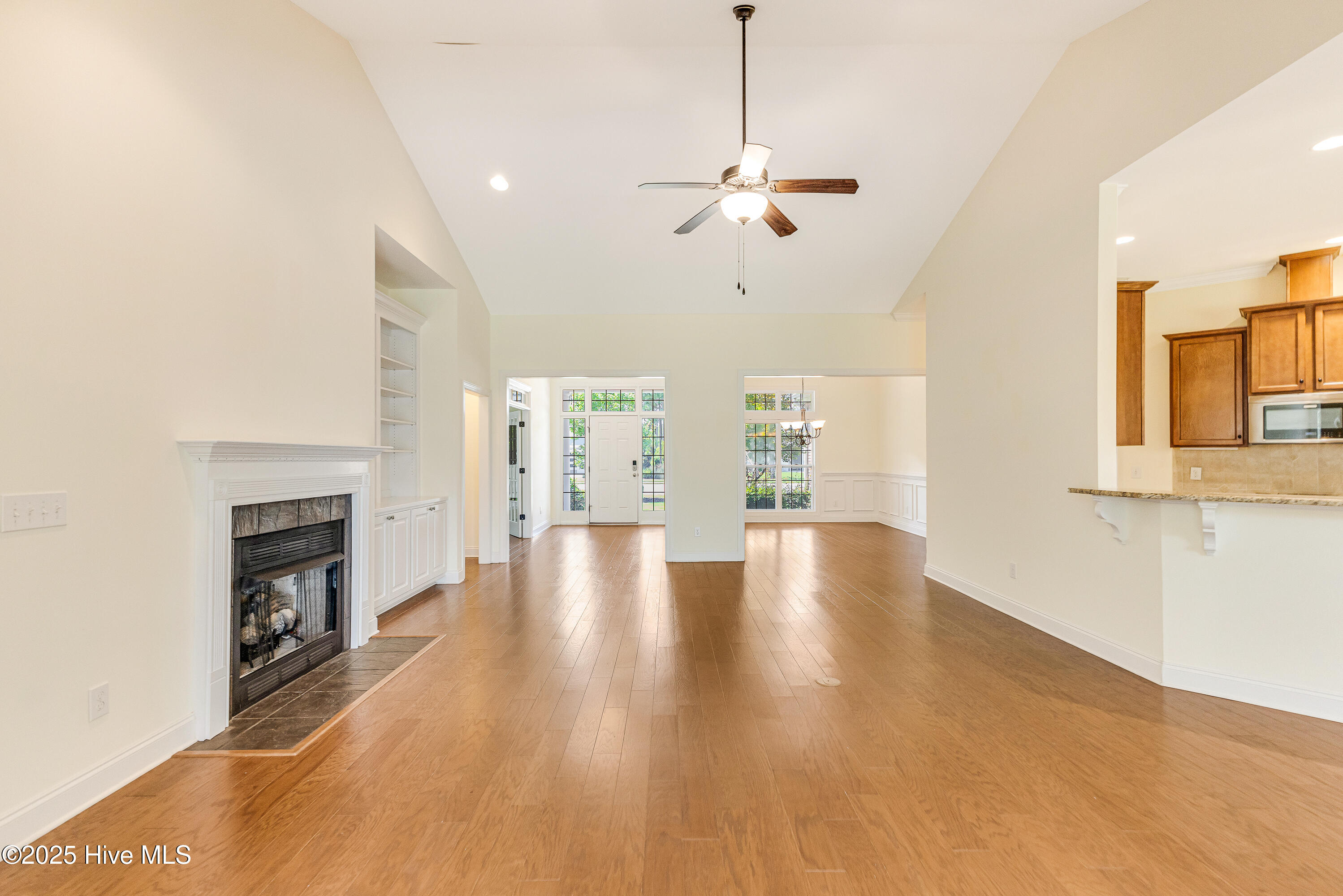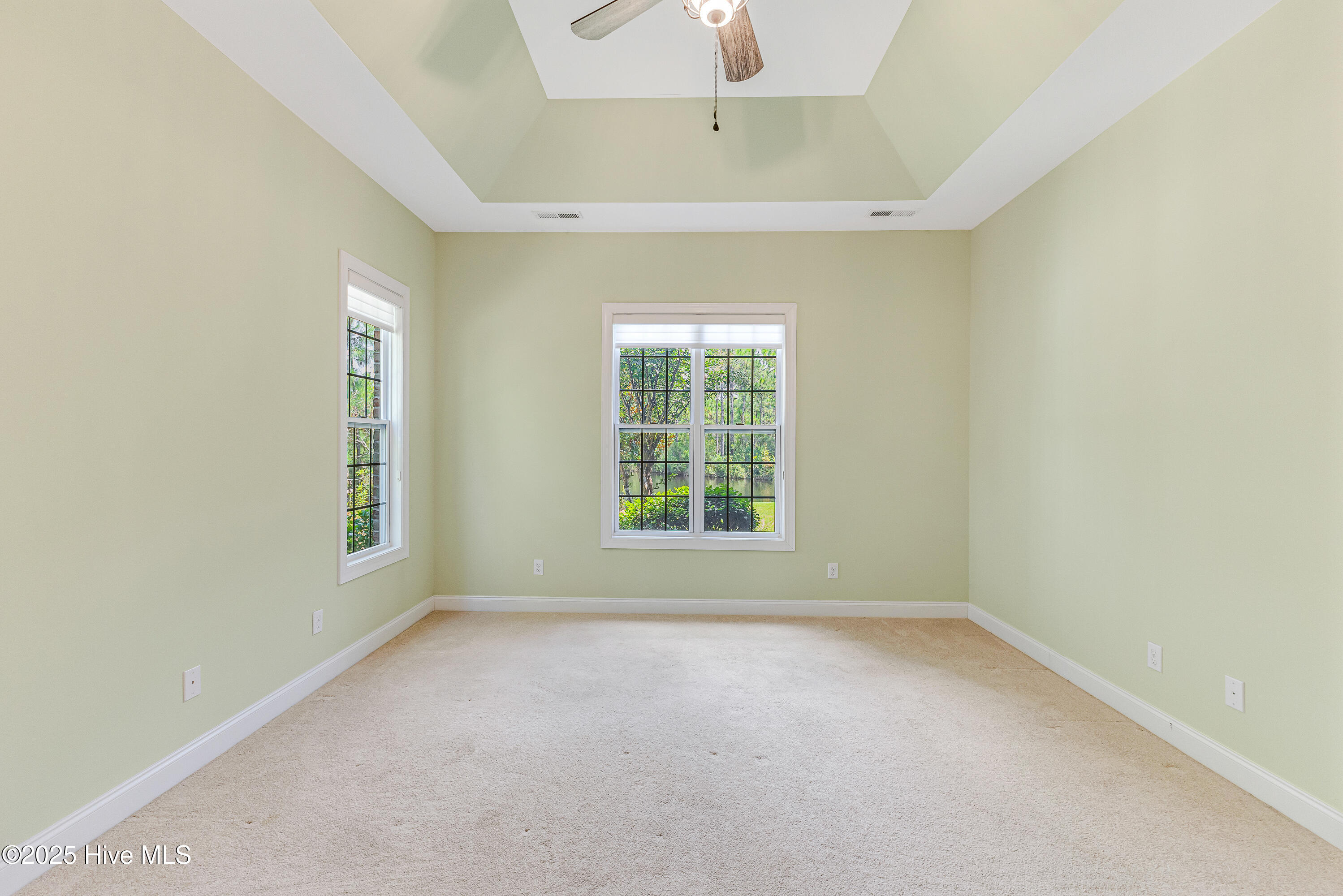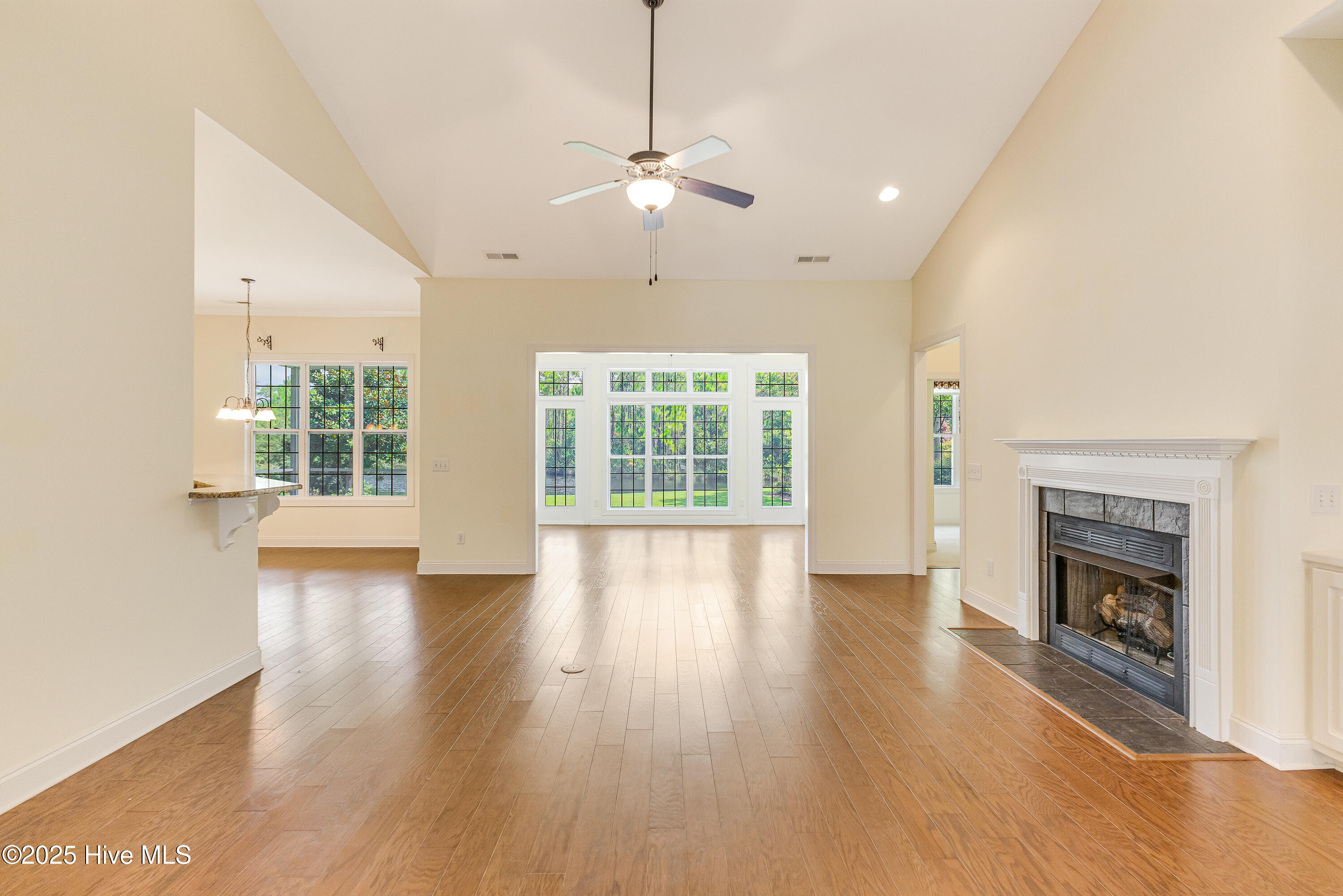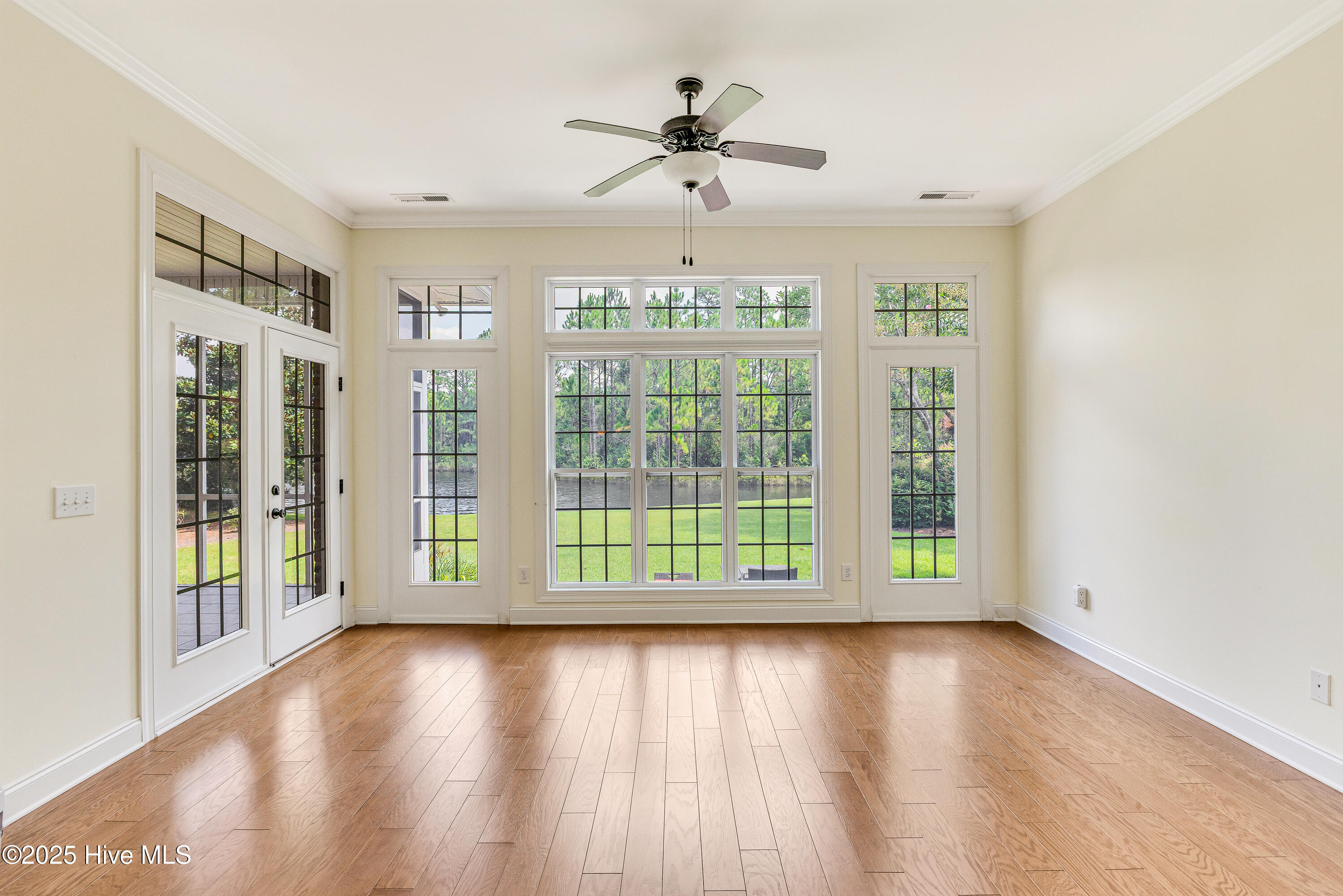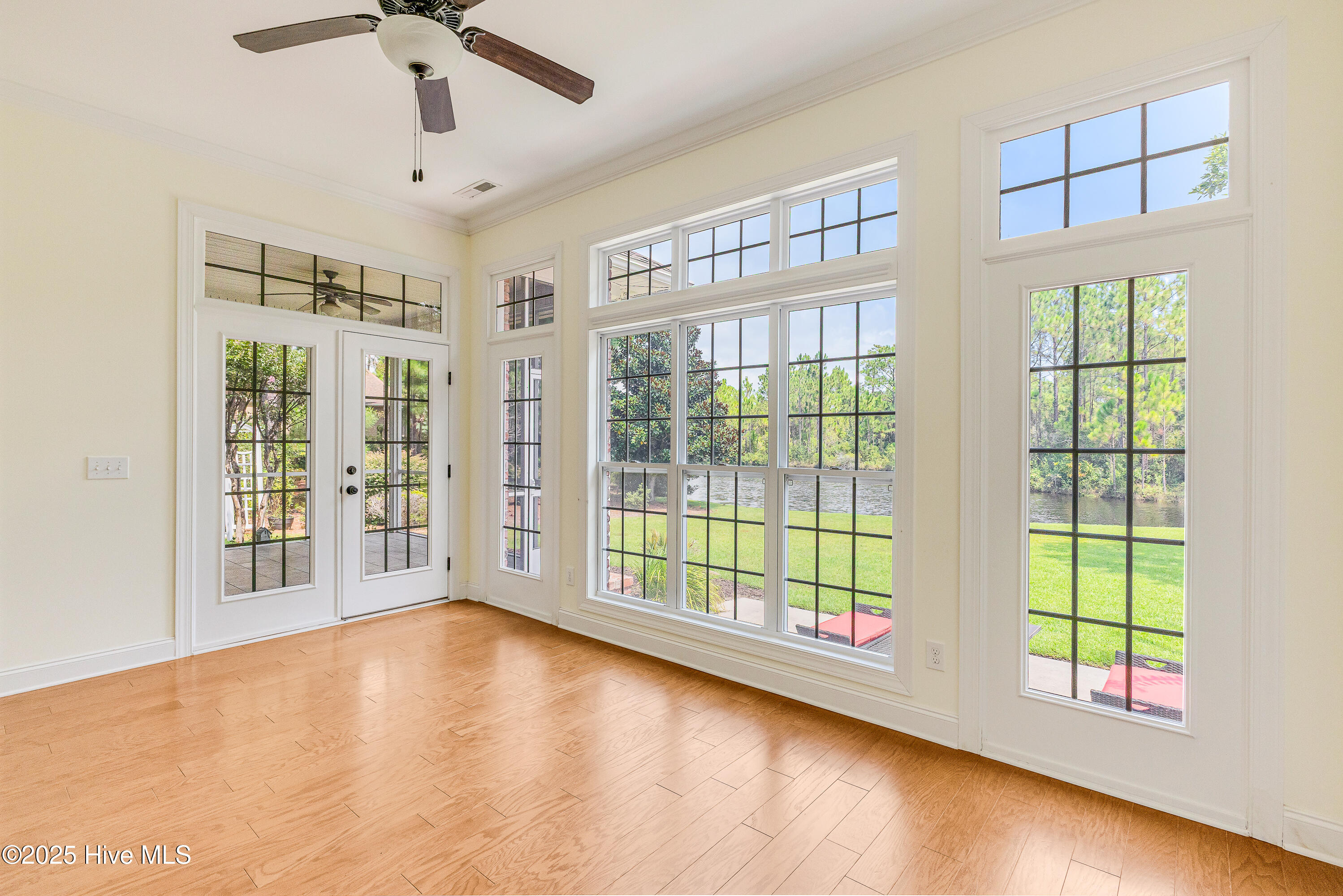 Step inside to a bright, open floor plan designed for both comfort and entertaining. The welcoming foyer opens to a dedicated office with French doors and a formal dining room, making a grand first impression. The spacious living room features a cozy gas fireplace and flows seamlessly into the Carolina Room, where walls of windows bring in soft natural light and offer tranquil pond views.