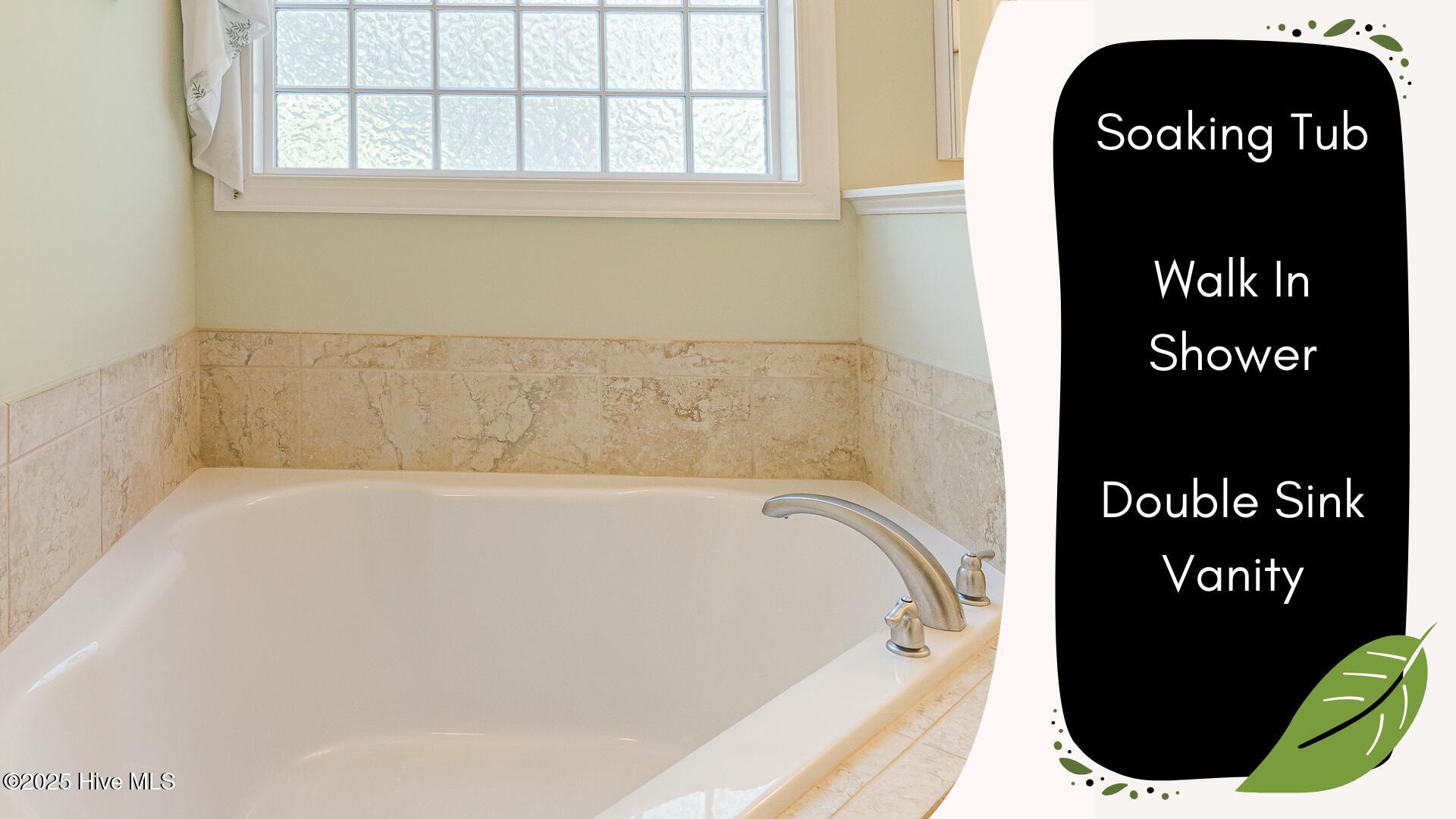 The kitchen offers abundant cabinet and counter space, plus a sunny breakfast nook for casual meals. All three bedrooms are on the main level—including a spacious primary suite with pond views, a luxurious bath (soaking tub, walk-in shower, double vanity, water closet, and huge walk-in closet), and two generous secondary bedrooms.