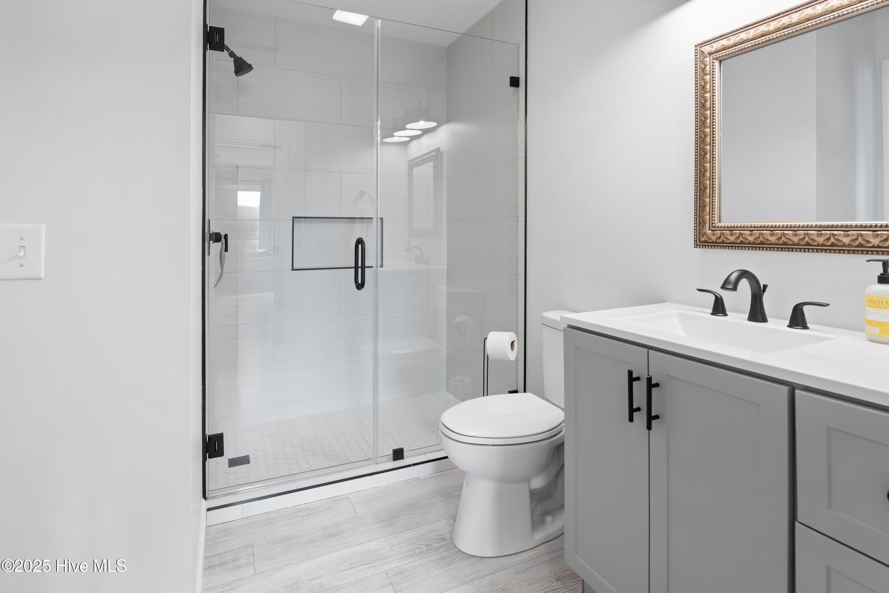 Stylish new tiled walk-in showers with glass doors in both baths, plus new cabinetry and sinks.