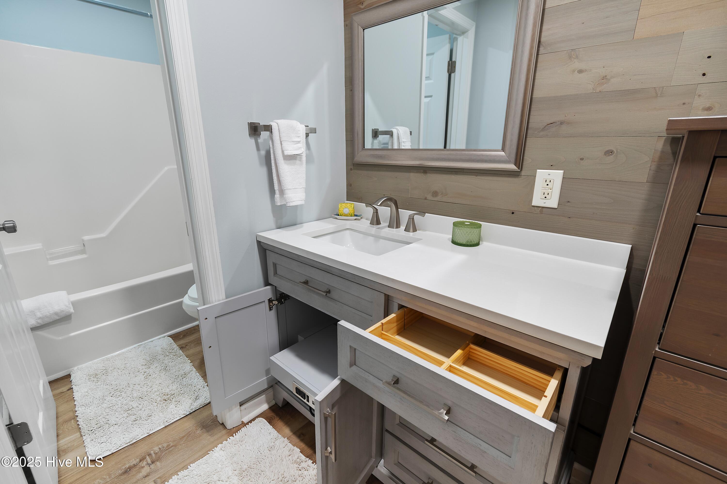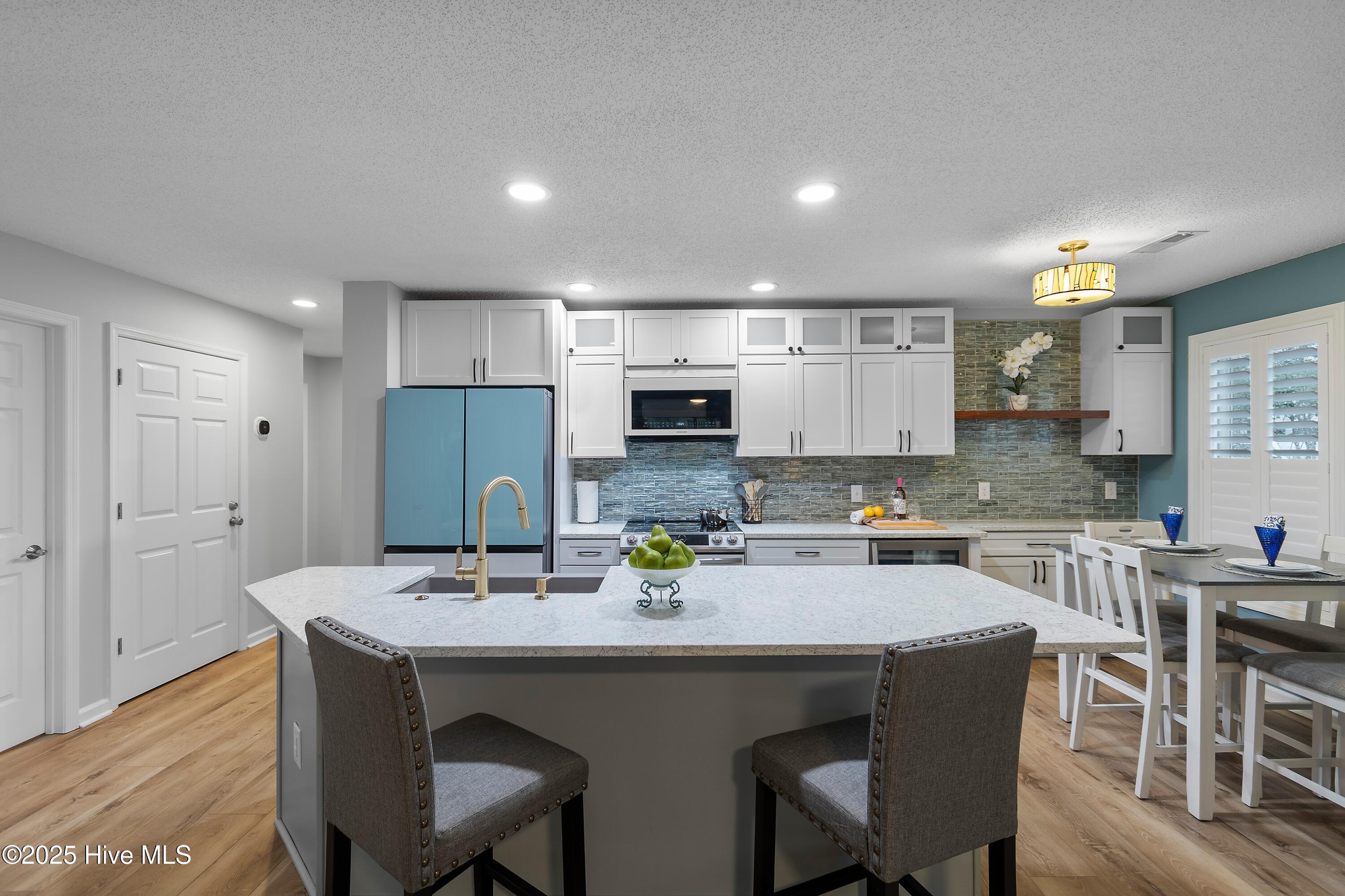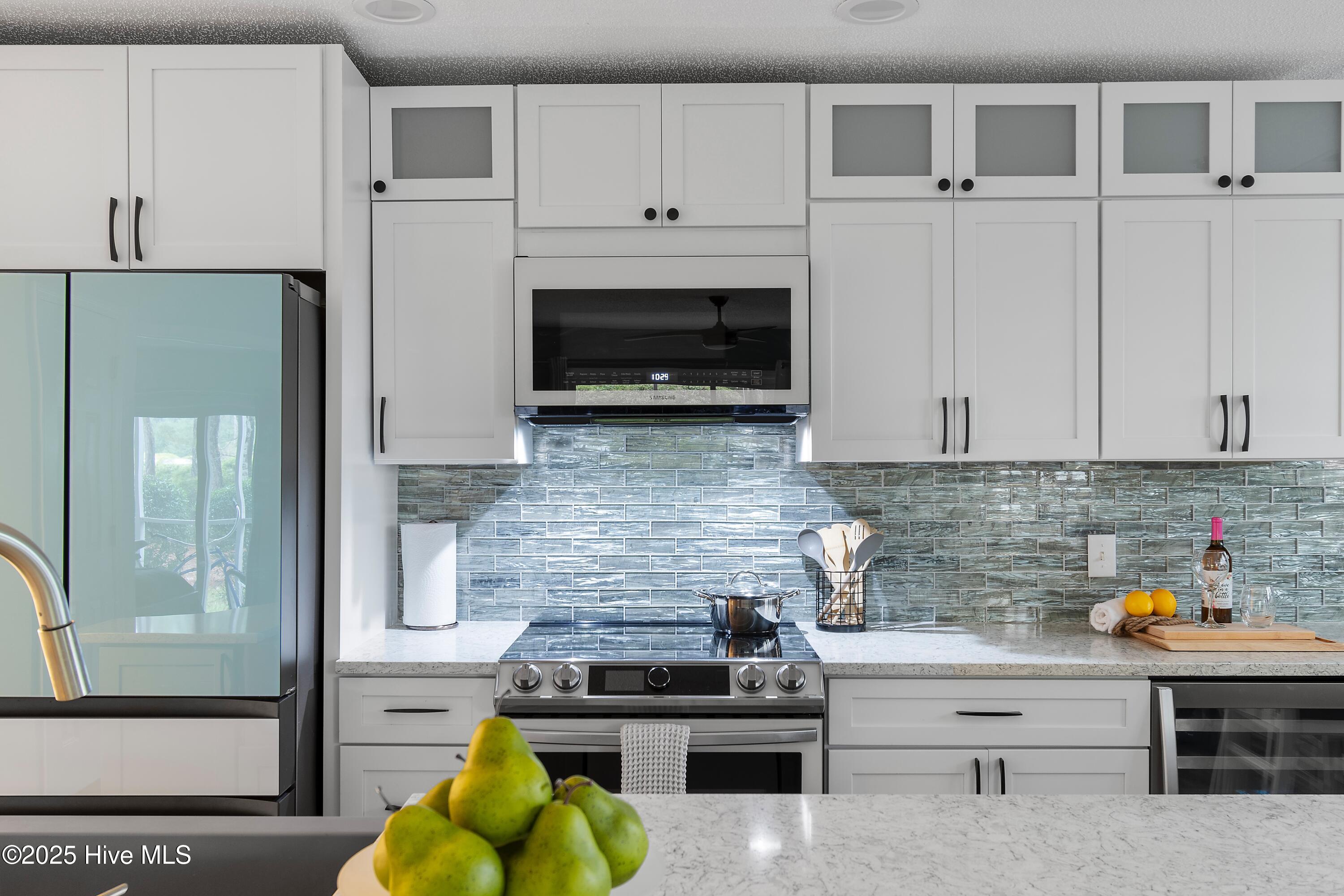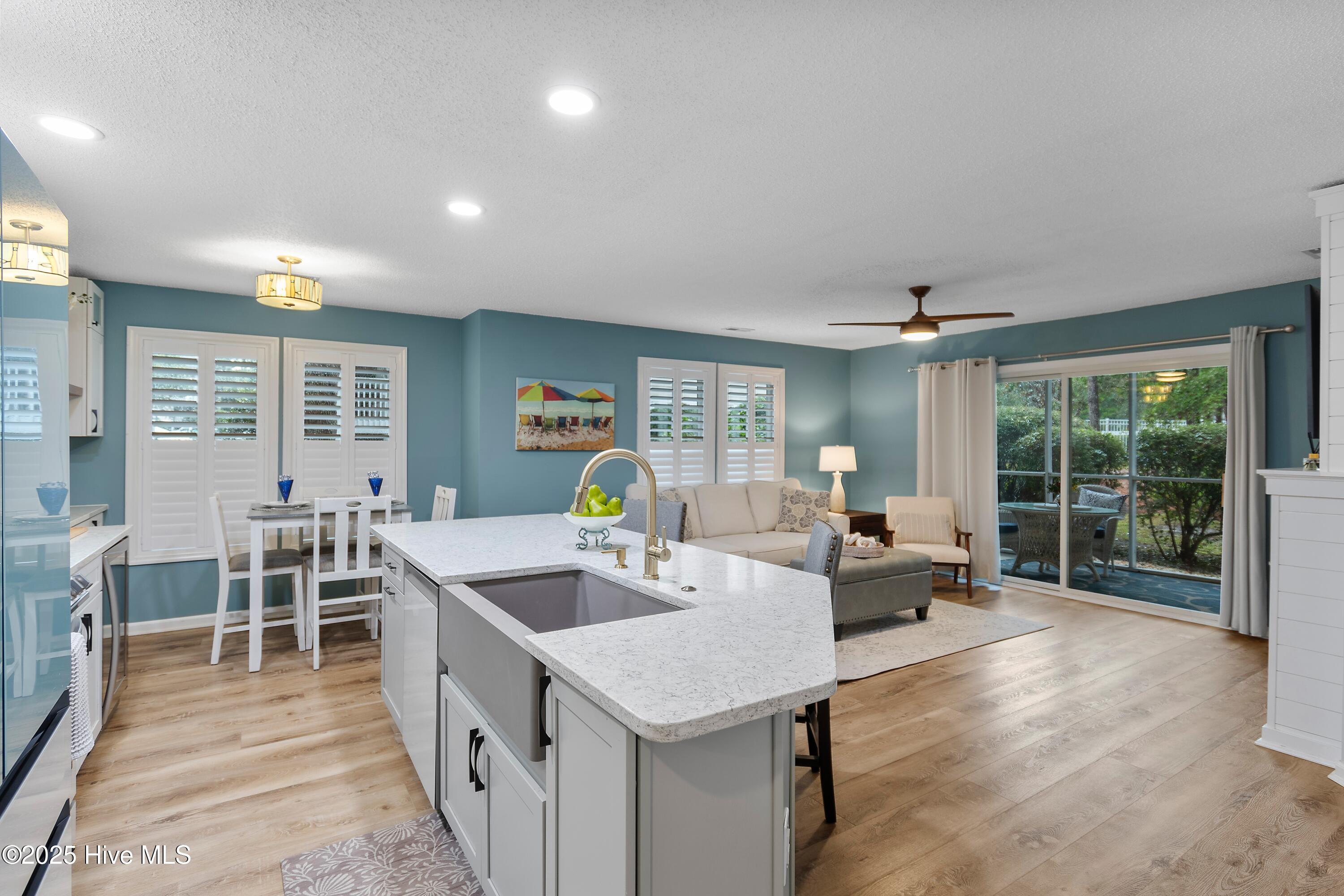 Welcome to this stunning fully furnished 1st floor condo in sought after St James Plantation. More than 60k in updates were added in 2023 to remodel the kitchen, baths and more. More you ask? Yes, new vinyl plank flooring, plantation shutters throughout, paint and electric fireplace with shiplap surround with blower to keep you cozy and warm when you need it were added as well! The kitchen remodel included solid maple, white cabinetry w/frosted glass upper cabinets, extended quartz countertops (counter height island), glass tile backsplash, composite sink, upgraded Samsung appliances with easy to clean, interchangeable glass panels on refrigerator & dishwasher, dual zone wine refrigerator and brass faucet w/soap dispenser. Bathroom remodels included flooring, vanity/sinks, fan lights and toilets. Other updates include tankless water heater, new washer/dryer, thermostats, Anderson screen door, and ceiling fans! You won't find a more beautifully updated condo in St. James and on the highly sought after 1st floor. No carrying heavy furniture, groceries, and luggage up flights of stairs. Enjoy mornings and evening on your screened porch with additional access from the primary bedroom and a short distance to the Club Villas private pool. As a resident of St. James, you'll enjoy four gated entrances, a private beach club with gated parking, showers and a pool, a full-service marina, Beacon 315 Restaurant and Tiki Bar, The Apothecary Boutique Pharmacy, and miles of parks and trails. St. James Plantation offers access to enjoy 81 holes of championship golf, five restaurants, indoor and outdoor pools, tennis, pickleball, croquet, and three state-of-the-art fitness centers. Take time to relax and explore the nearby historic towns of Southport and Wilmington. Enjoy maintenance free living and start your new lifestyle today!