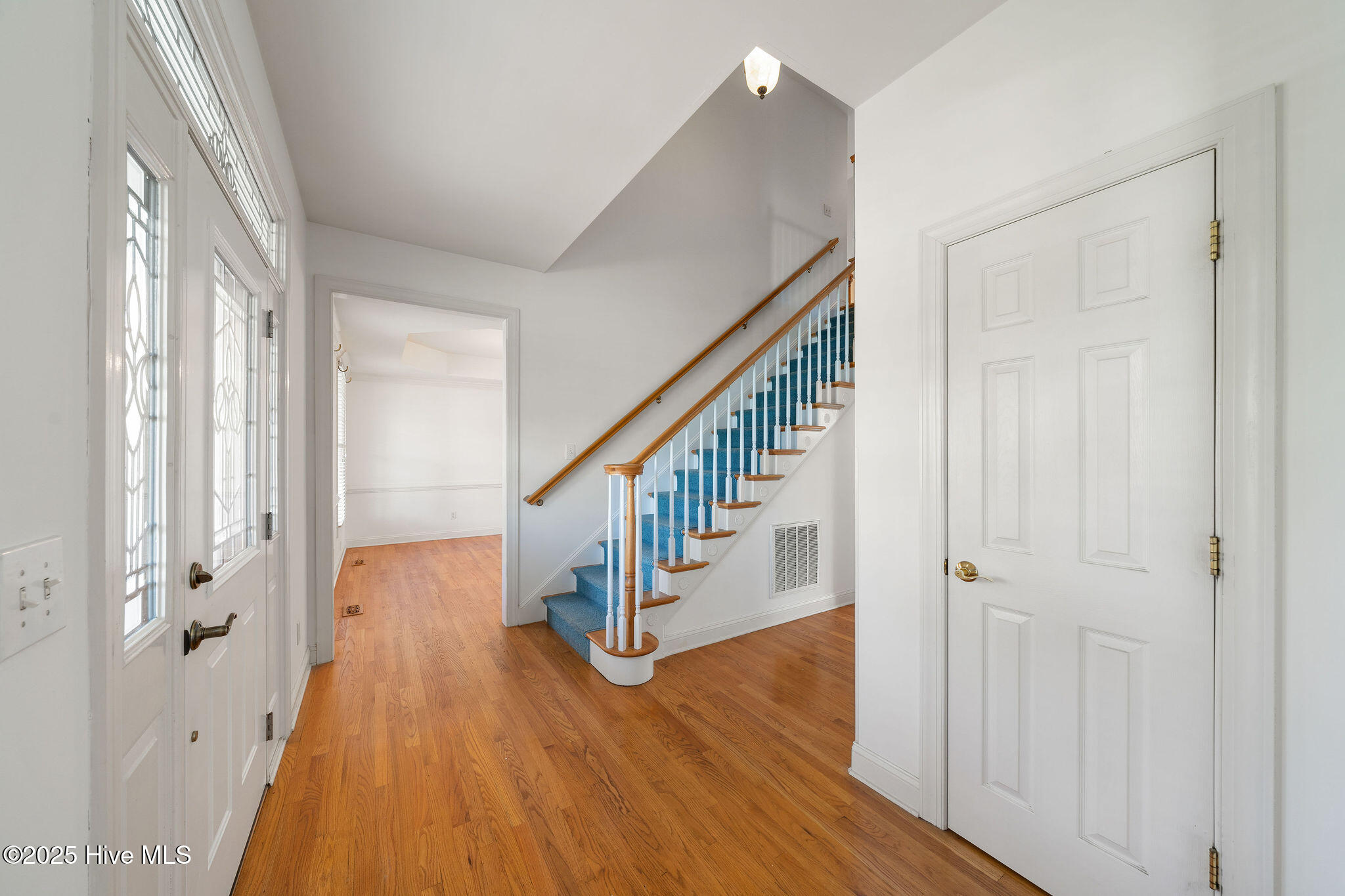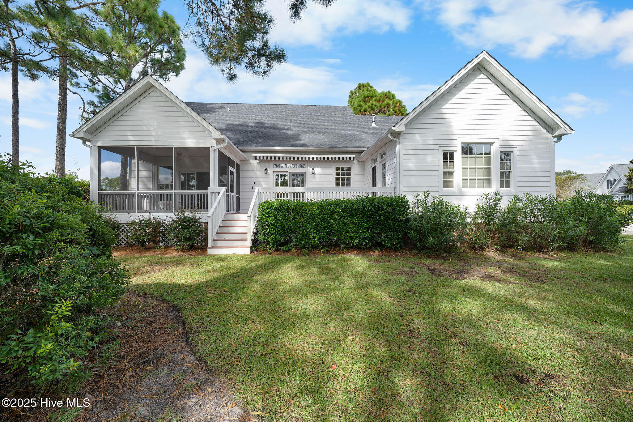 This quintessential low country style home designed by famous southern architect William Poole embodies timeless classic charm and is perfectly situated on a desirable corner site in St. James Plantation. The membership status is currently inactive on 4103 Kittwake Court; however, it also includes a one-time Premier Transferable membership, which means a new buyers can join at any Premier category (Golf, Sport, or Social) for an Activation and Applicaon Fees of $5,500 and by submitting the Membership Application to activate a membership no later than 30 days from closing. The new buyer has the option to upgrade to the Signature level for $10k no later than 30 days from closing. A friendly notice the 'Signature' membership is valued at $30k. A lush front lawn due to irrigation with a separate well frames the concrete pathway that leads to an amazing rocking chair front porch adorned with wood plank decking. The elegant front door, accented by beveled glass sidelights and a transom window, sets the tone for the warmth and character found throughout the home. Inside, you'll discover four spacious bedrooms and three and a half bathrooms in a sprawling 3,361 heated square ft. Step inside the two-story foyer to explore both the formal and casual living spaces. As you enter to the left the formal dining room welcomes you with gleaming hardwood flooring, chair rail molding, and a tray ceiling that showcases a classic multi-light chandelier. On the opposite side of the entryway, a versatile flex space serves beautifully as a home office, den, or library, highlighted by a decorative millwork header framing the French doors that open into the great room. The real three-quarter inch hardwood flooring continues into this light filled gathering space, where a gas propane fireplace extends into the room setting the tone for a cozy setting. Wide sliding doors connect the great room to a delightful, screened porch and an open deck with retractable awning, perfect f
