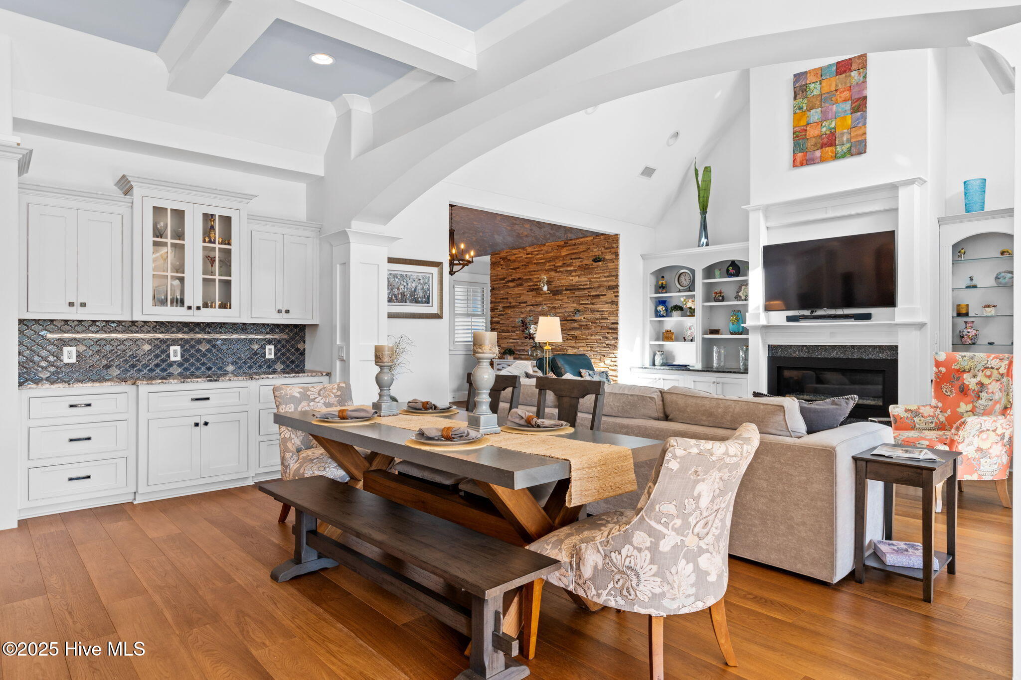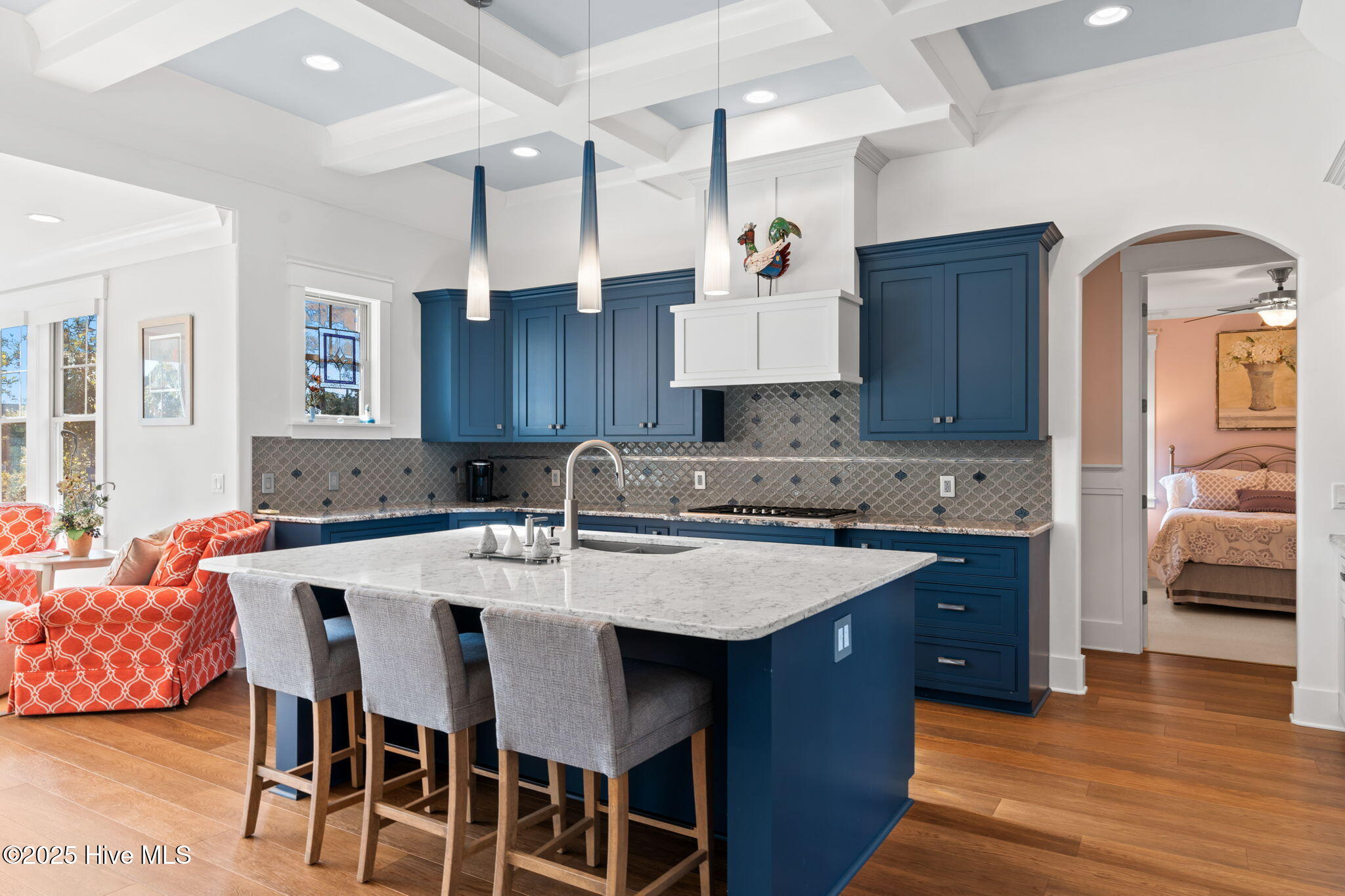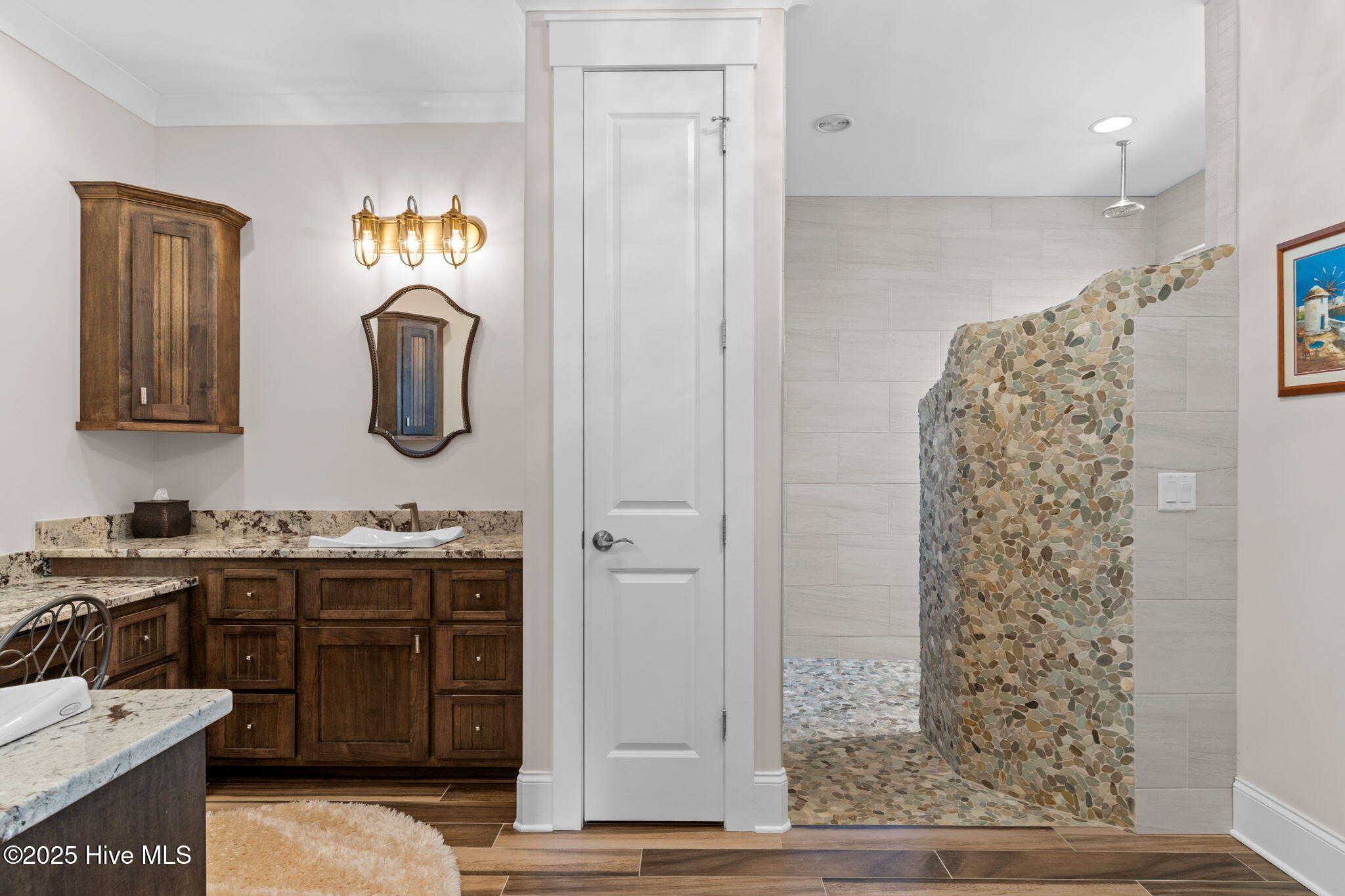 Welcome to your sanctuary in the Woodlands Park section of St. James, where timeless design meets serene waterfront living. This custom 4-bedroom, 3.5-bath home offers 3,222 sq ft of expertly crafted living space, perfectly positioned to capture tranquil water views & the relaxed elegance of coastal Carolina life. Stepping inside you are greeted by a stunning foyer featuring a Wonder Wall Studio accent wall & venetian plaster barreled ceiling-a taste of the design & craftsmanship that runs throughout. Filled with natural light, the living room immediately draws your eye to the picturesque water views & the sunporch, ideal for morning coffee or an evening glass of wine. The primary suite is a true retreat, with breathtaking views, tray ceilings, spa-like ensuite & oversized walk-in closet. A chef's dream, the gourmet kitchen features granite countertops, custom cabinetry, stainless steel appliances, & a large island perfect for cooking & entertaining. Adjacent to the kitchen, enjoy a dining area & a sitting room that easily serves as a formal dining space. A hidden door leads to an oversized laundry room & walk-in pantry. The opposite wing of the home includes two spacious bedrooms with a Jack & Jill bath, offering privacy & comfort for friends or family. Upstairs, a large bonus room with a bath provides flexible space for a 4th bedroom, media room or gym. Outside, you'll find a large deck, & peaceful water views that offer the perfect backdrop. The oversized two-car garage includes a workshop area & plenty of storage. Located in the amenity-rich St. James, residents enjoy access to a marina, beach club on Oak Island, and with membership 4 championship golf courses, tennis & pickleball courts, fitness centers, indoor & outdoor pools, walking trails, & more—all just minutes from historic Southport & Oak Island. Homes with this level of design, space, & water frontage are a rare find. Schedule your tour today & discover the best of coastal Carolina living.
