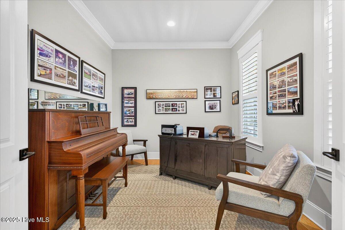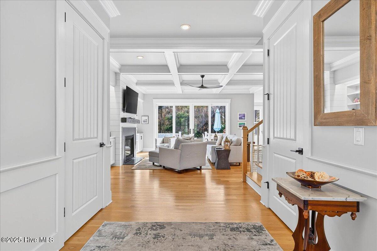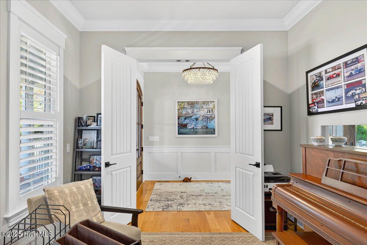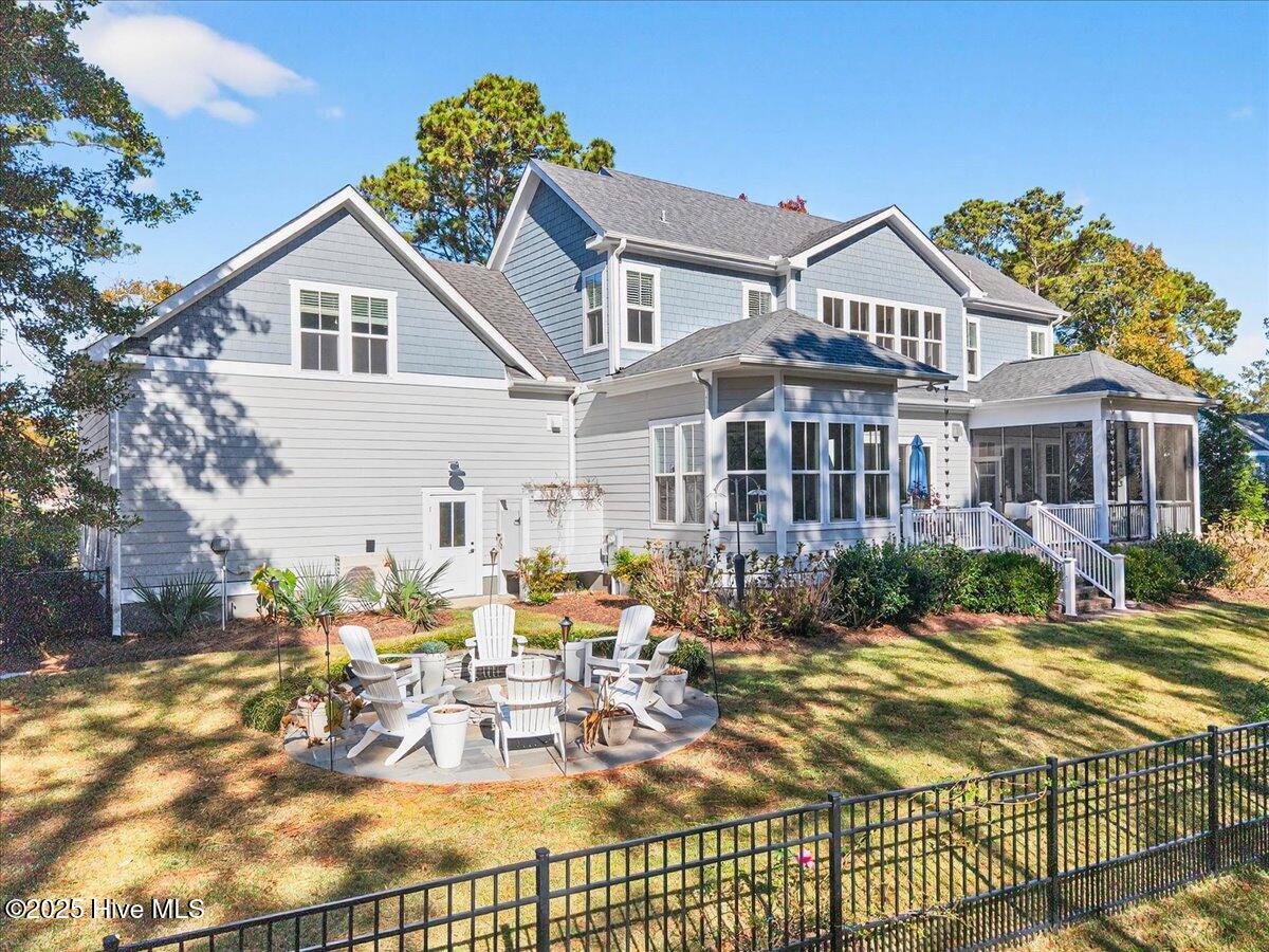 Situated within an exceptionally private cul-de-sac and embraced by views of protected woodland and a tranquil creek, this distinguished Low Country residence masterfully crafted by acclaimed luxury builder Will Thornton Custom Homes, presents a lifestyle defined by elegance, serenity, and effortless coastal sophistication. Here, refined living unfolds across four beautifully appointed bedrooms, three and a half impeccably finished baths, a dedicated office, and an expansive bonus room, each space curated with thoughtful intention and superior craftsmanship, including 8-foot solid doors, 5-inch white oak flooring, spray-foam insulation, and a central vacuum system. The gourmet kitchen acts as the home's culinary showpiece, where an impressive island, integrated lighting, and discreetly concealed outlets blend form and function with remarkable artistry. In the great room, a reclaimed Cape Fear River railroad tie, reimagined as a floating mantel and framed by shiplap, anchors the space with understated elegance. Designed for those who cherish both privacy and connection with nature, the home's expansive screened-in porch, gracious outdoor deck, and fire pit enclave create an atmosphere reminiscent of a luxury retreat where mornings begin with ocean breezes and evenings unfold under a canopy of stars. Additional indulgences include an oversized heated and cooled garage with epoxy flooring, Azek front-porch decking, an outdoor shower, spa-caliber tiled baths, a fenced-in yard, and refined exterior lighting that lends a soft architectural glow after dusk. Set within the prestigious gated community of St. James, residents enjoy an enviable lifestyle enriched by more than $100 million in world-class amenities including championship golf, a private marina, waterfront dining, multiple resort-style pools, tennis and pickleball courts, state-of-the-art fitness centers, parks, nature trails, and an exclusive oceanfront beach club. Just moments from the St. James Marina