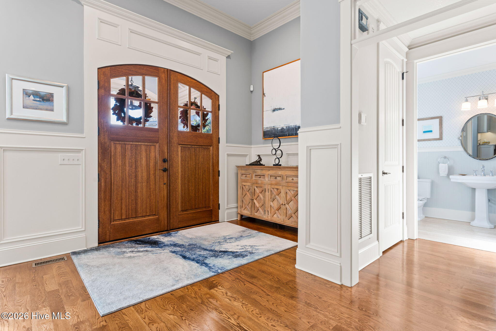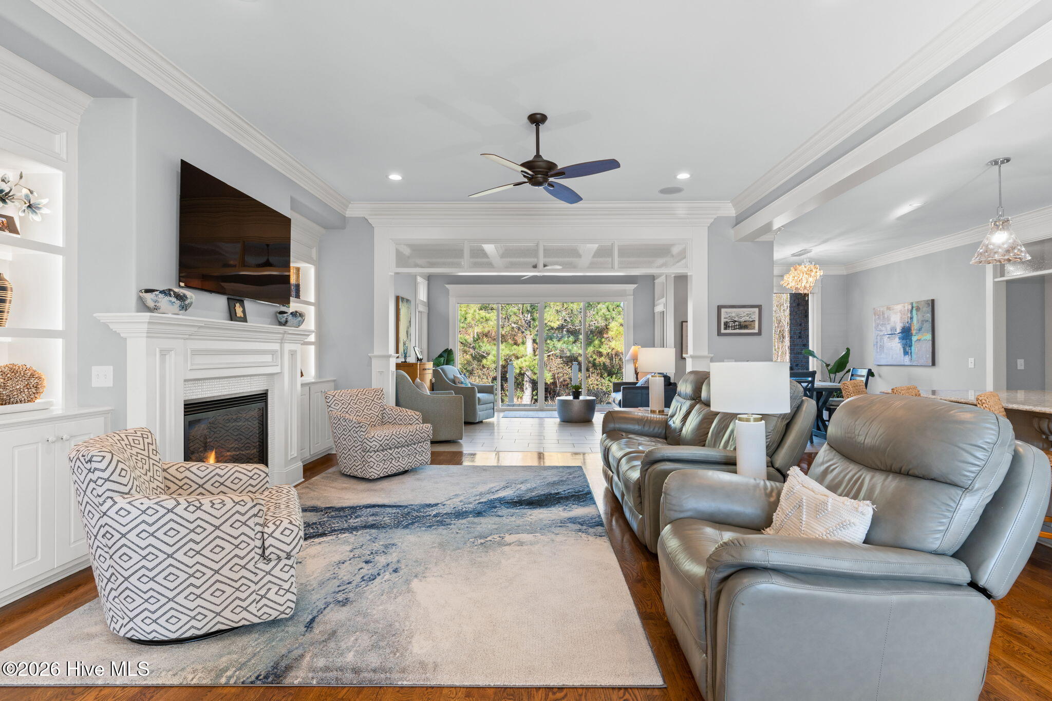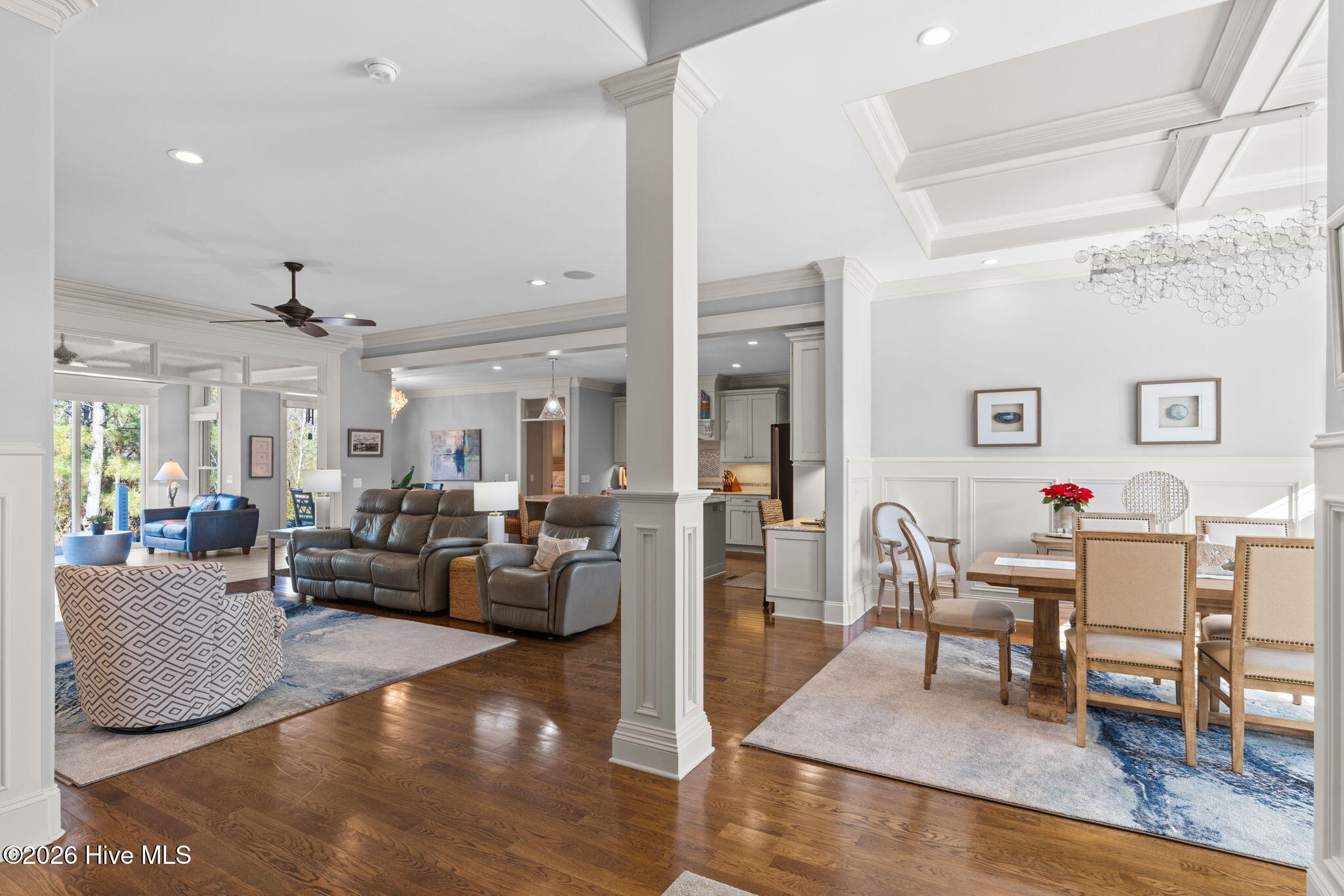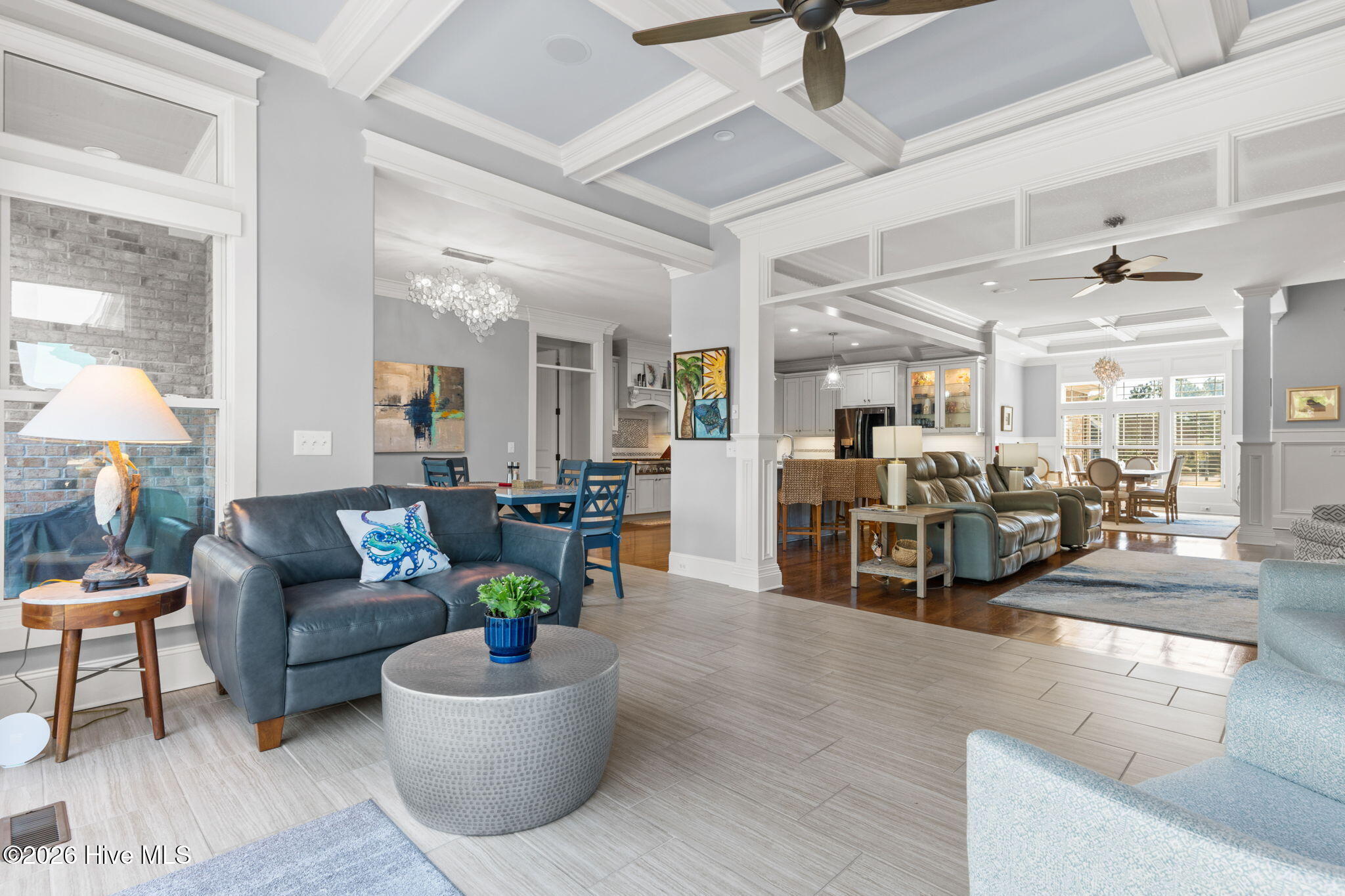 Exquisite custom home located in the prestigious Reserve section of St James Plantation on a quiet cul-de-sac, designed and built by Signature Construction Group with impeccable craftmanship, refined luxury and meticulous attention to detail. Step inside the double mahogany doors to discover a grand open concept layout filled with natural light, soaring coffered ceilings, 8 foot solid core doors and elegant finishes throughout. The gourmet chefs kitchen boasts Thermador appliances, a 6-burner gas cooktop, double ovens, beverage fridge, large pantry and soft close cabinetry that make it perfect for entertaining. The primary bedroom serves as a private retreat featuring a lighted trey ceiling, walk in closet and spa inspired soaking tub and a zero entry shower with Jets and a double shower head. The additional downstairs bedroom has the feel of a dual primary bedroom with a large ensuite bathroom with a large tub and separate shower. Upstairs feels like another complete living space with a large family room and wet bar, large 3rd bedroom, full bath and a finished flex-space currently used as a workout room but could be an office or additional bedroom. A big walk in storage space is a nice addition and has closed spray foam insulation Crawl space is completely sealed with foam insulation. The private backyard backs up to a lush forest with sweeping views of the pond that can be enjoyed from the Trex deck with retractable awning.