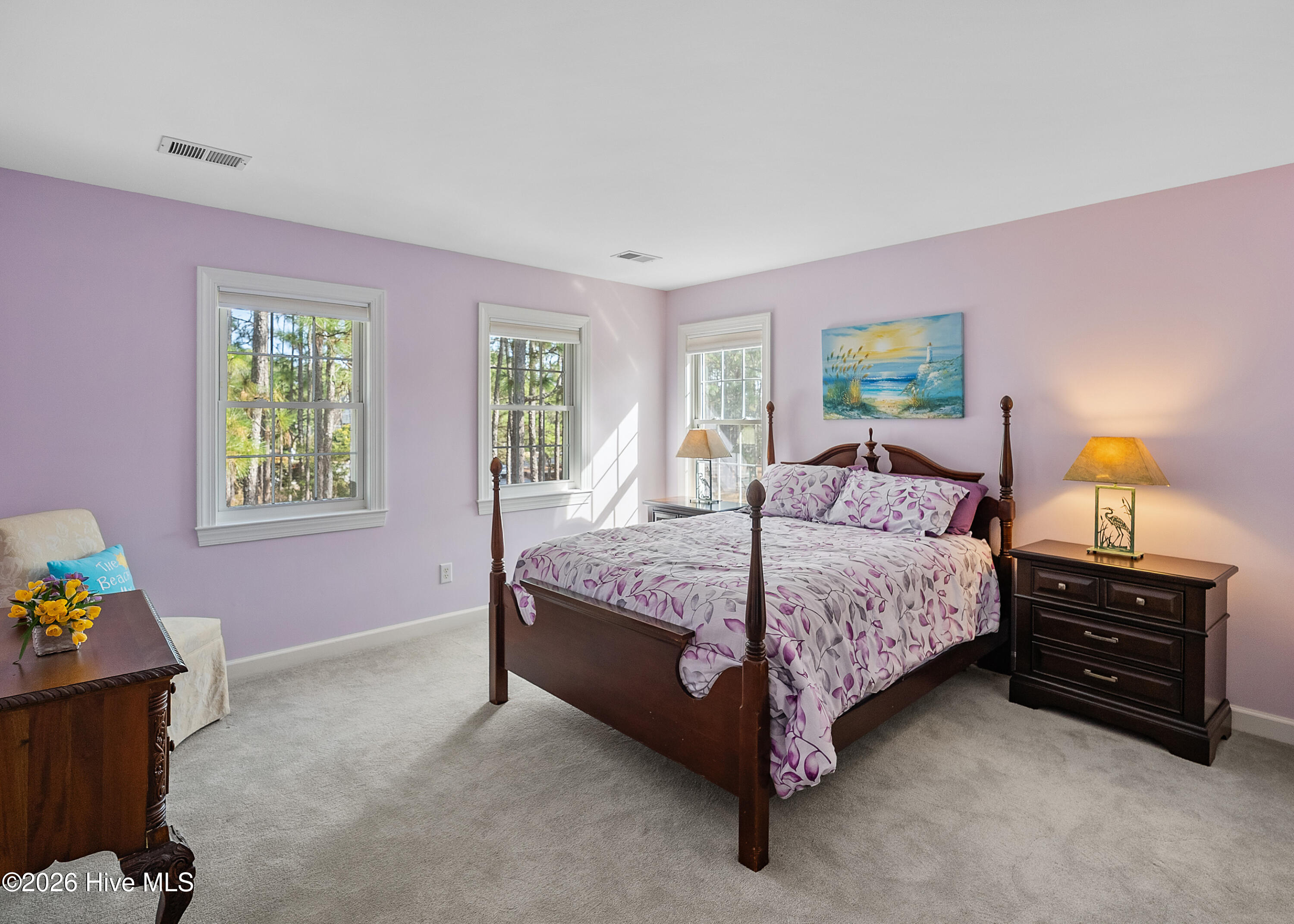 Nestled in St. James Plantation, this spacious home sits on a generous lot shaded by Loblolly Pines and Live Oaks, offering privacy and ensuring a tranquil, secluded ambiance just moments from the community's treasured amenities. It overlooks the Members Club golf course, preserving views and seclusion. The lot features low-maintenance landscaping with minimal upkeep, ideal for enjoying the surroundings. Interior highlights include a large living room with a 17-foot ceiling and a cozy fireplace. The main floor primary suite provides convenience and privacy, with easy access to the rest of the home. A flexible space on the main floor can serve as an office or bedroom. The eat-in kitchen and separate dining room are designed for relaxed meal and intimate dinner parties. The bright sunroom invites the outdoors in. Outdoor living includes a large screened porch, an outdoor shower, and three ceiling fans for comfort. A welcoming front porch adds to the home's southern charm. The home is 3,000 plus square feet of thoughtfully arranged living space with single-level options and generous primary spaces. Privacy and tranquility abound in an amenity-rich community with easy access to golf, pool, club facilities, beach club and nature. Upstairs: three bedrooms and one bath, offering flexible options for family and guests. If you're seeking an elegant, easy-care retreat in St. James Plantation that balances comfort, sophistication, and privacy—with room to grow—this home is a compelling choice.