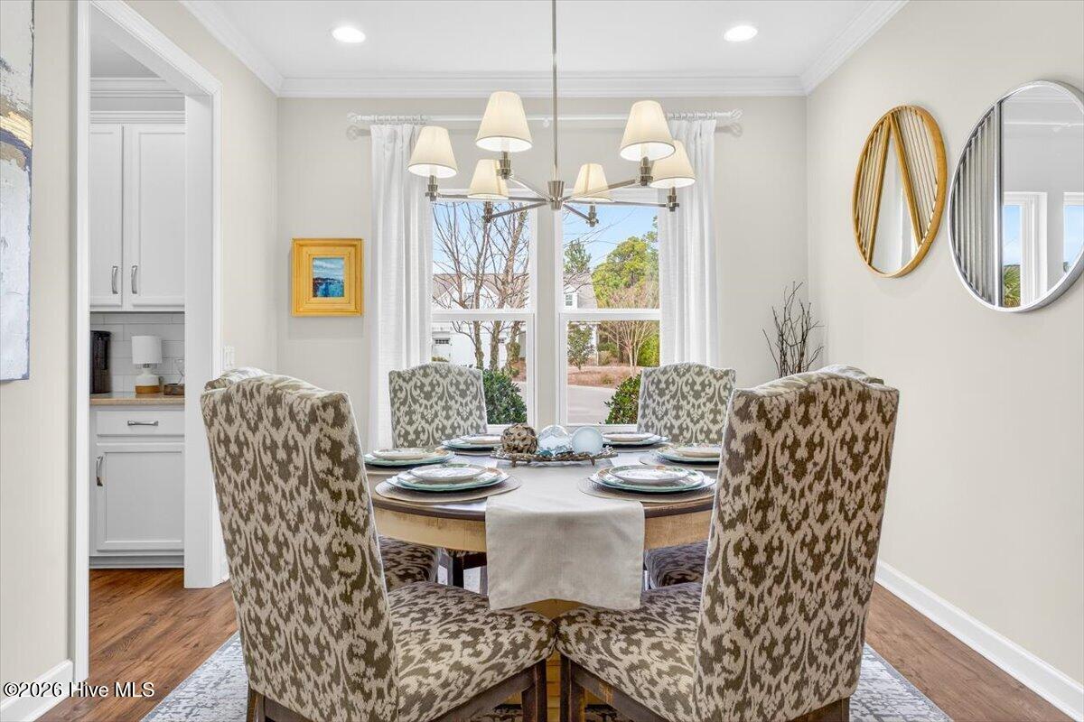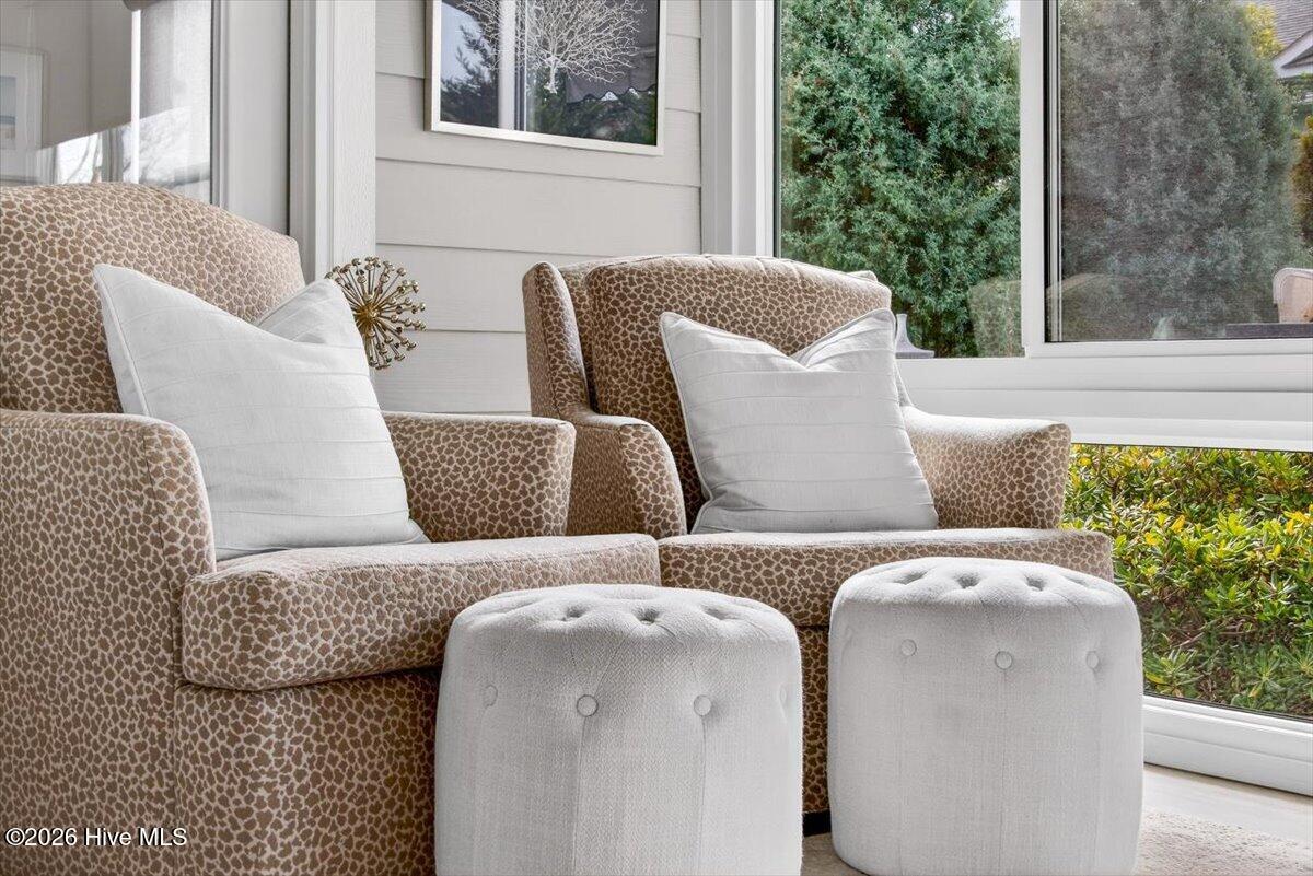 The welcoming front porch sets the tone for this beautiful home. Inside, the foyer opens to a bright guest bedroom and full bath with tile floors, a tub/shower combo, and a spacious vanity. The open concept living area features a large family room with a gas fireplace and a chef's kitchen with a sunny breakfast nook. Connected to the kitchen is a formal dining room making the house perfect for entertaining. The light-filled Carolina Room offers the perfect spot to relax year-round while overlooking your own garden oasis. The owner's suite features a private sitting area, generous bedroom, double vanities, an oversized shower, and a walk-in closet.