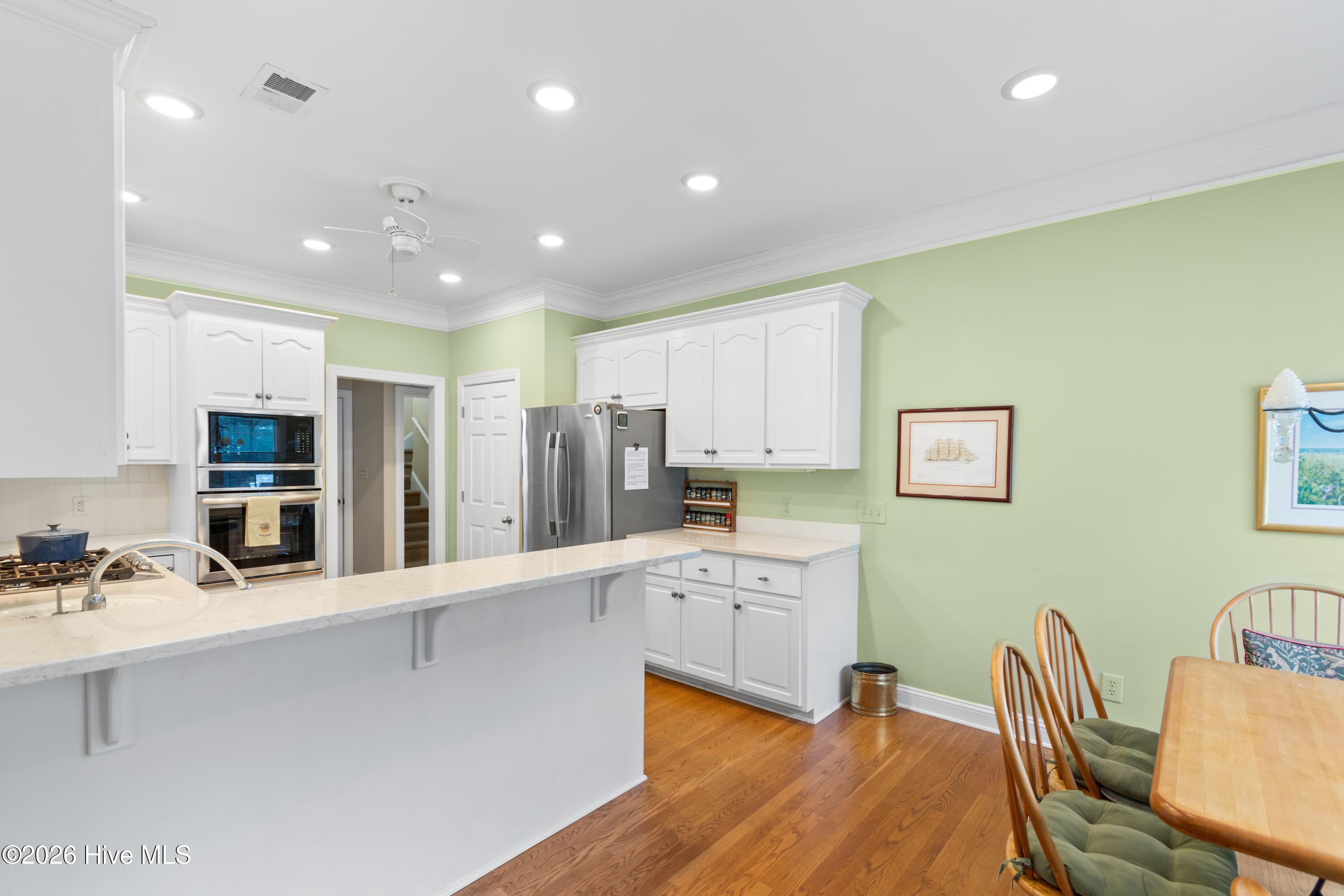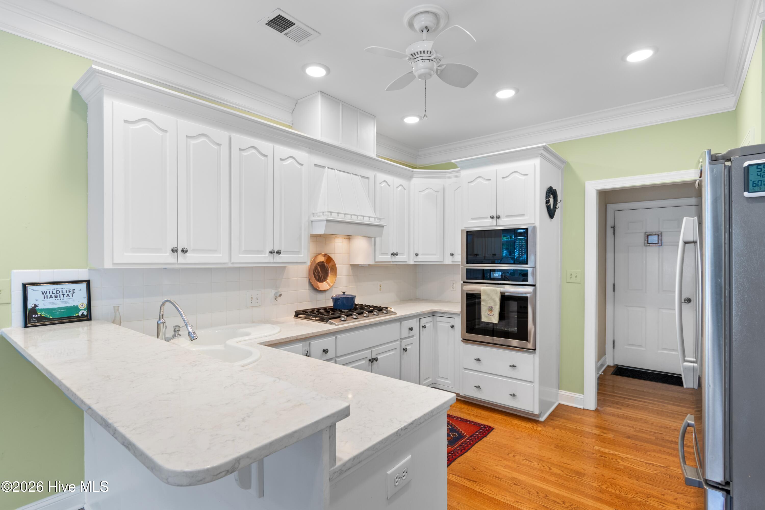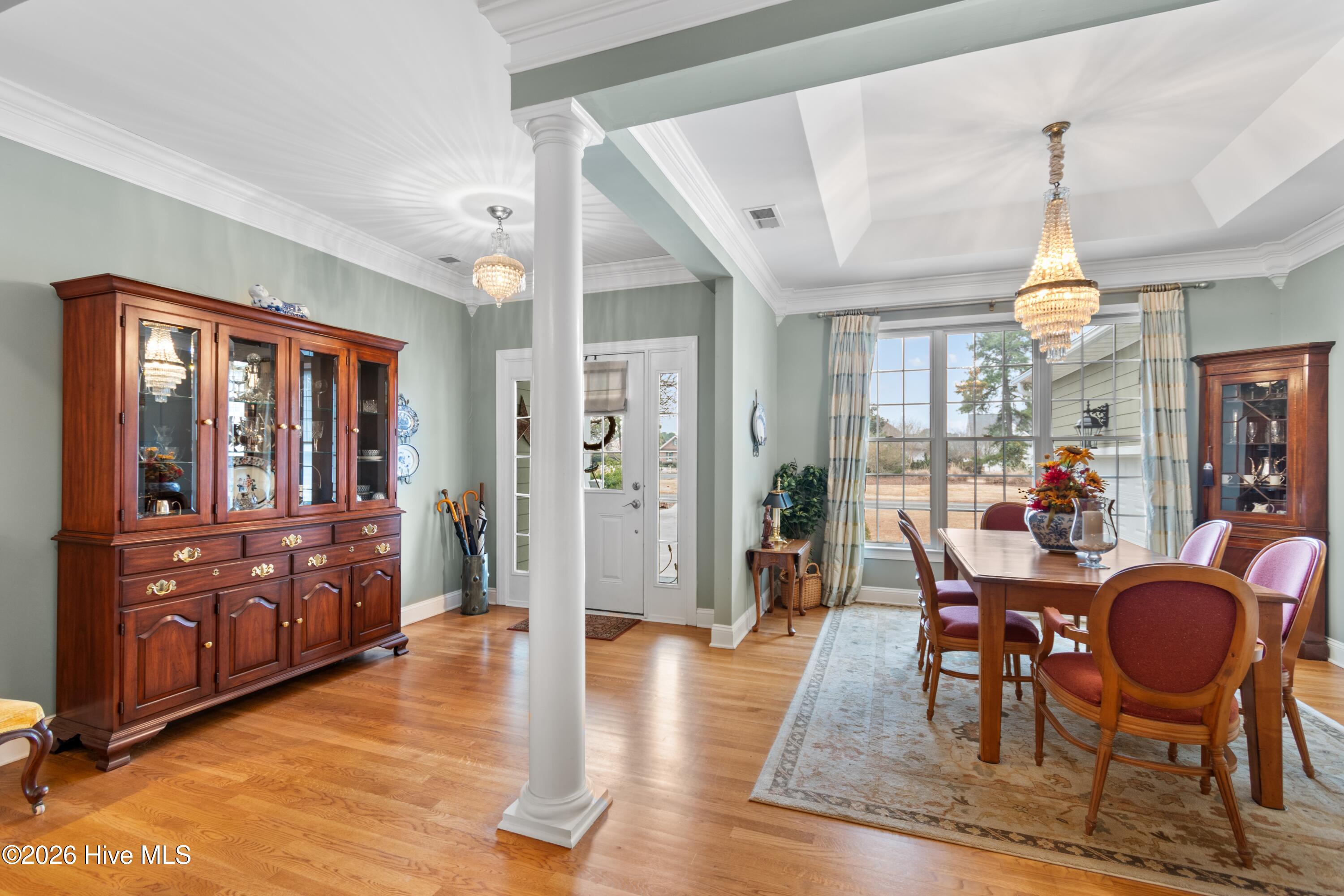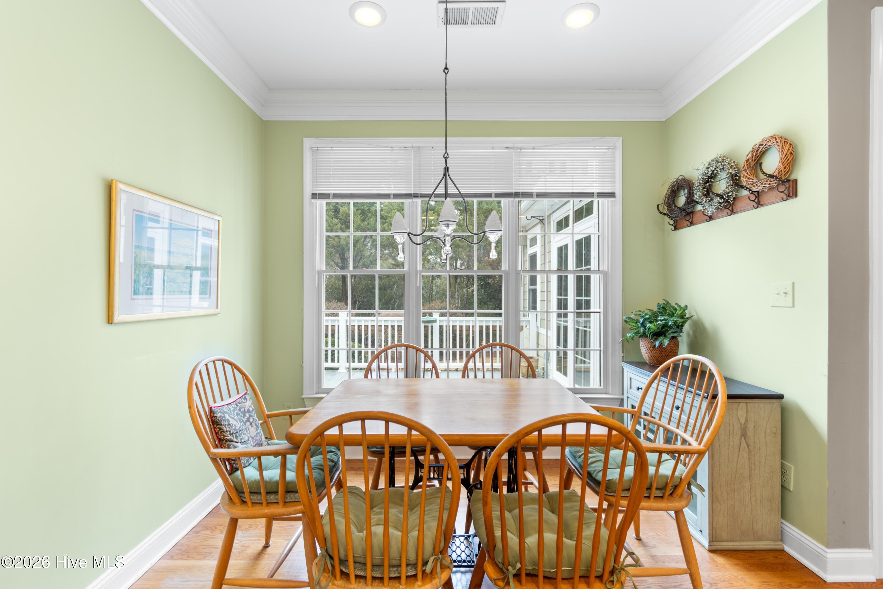Beautiful 4-bedroom, 3-bath home nestled in the amenity-rich, gated community of St. James Plantation. This beautifully maintained residence offers timeless curb appeal with manicured landscaping, mature trees, and a pocket park directly in front of the home. Inside, you'll find a spacious layout with room to live. Upon entering, you are greeted with a spacious room and two-sided fireplace that include crown molding, tray ceilings, and decorative columns. The open dining room sets the stage for memorable gatherings, while the recently updated kitchen showcases Quartz countertops, a 5-burner gourmet gas cooktop, stainless appliances including a combo microwave and self-cleaning oven, crisp white cabinetry, and abundant storage. Natural light pours into the cheerful breakfast nook overlooking the landscaped backyard. A sunroom with beadboard ceiling and walls of windows opens to the back deck—ideal for al fresco dining or quiet mornings surrounded by nature. The primary suite offers deck access, light-filled bathroomand a large walk-in closet. A finished room over the garage serves as a private fourth bedroom with full bath. On an oversized lot, this Certified Wildlife Habitat features a charming English garden attracting butterflies and bluebirds. The built-in gas line provides effortless grilling, and the oversized garage offers extra storage. As an extra bonus, the encapsulated crawlspace provides worry free maintainence. Enjoy St. James' world-class amenities: four golf clubhouses, 81 holes of golf, tennis, pickleball, indoor and outdoor pools, fitness centers, marina, and the private Oak Island Beach Club.