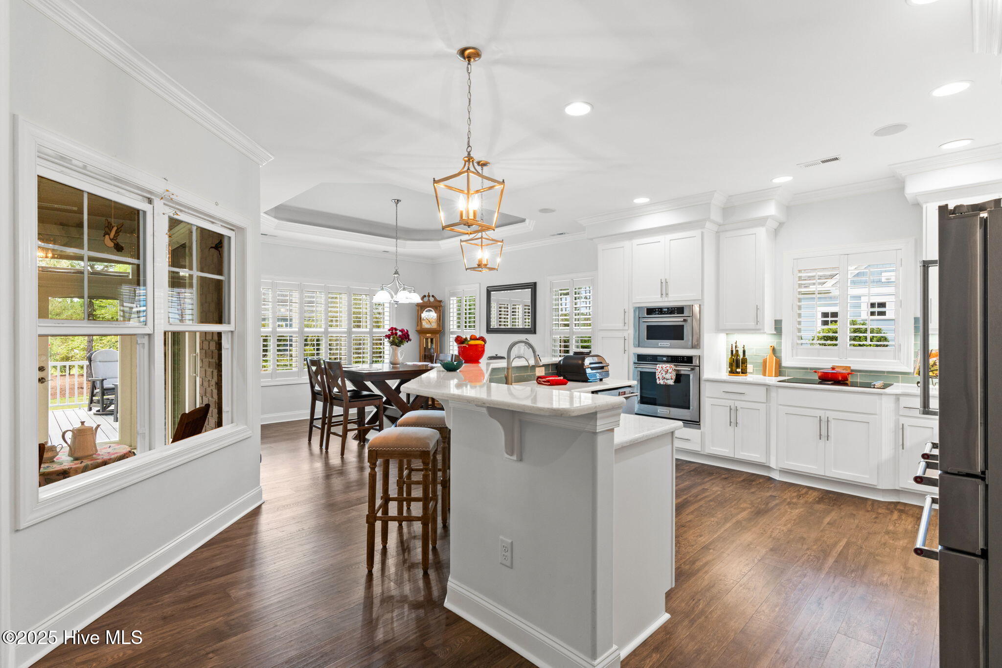 Welcome to effortless living in 3001 Moss Hammock Wynd. This beautifully maintained home was built in 2019 and ideally located near the Seaside Wellness Center and pool, Seaside Gate, Woodlands Park, and the Members Club. Designed with a spacious and open social floorplan, this home is perfect for both relaxing and entertaining. The low-maintenance exterior means you'll spend more time enjoying all the amenities the community has to offer. Inside, you'll find elegant plantation shutters throughout, coffered ceilings, low-maintenace LVP flooring throughout the entire home, beautiful stainless steel appliances and a light-filled sunroom with an electric roll-down hurricane shutter for added peace of mind. The private office boasts intrinsic ceiling and trim details. A Kinetico whole-house water softener and Kitchen Reverse Osmosis, generator plug in garage, and a home warranty paid through July 2028 provides additional value and security. If you decide to step outside of the large four-season sunroom, the rear deck and large rear yard offer plenty of opportunity for outdoor living! The decking is comprised of low-maintenance materials including Trex decking, PVC railings and a beautiful cedar pergola with adjustable sunscreen. Finally, The membership is active which saves a buyer up to potentially $10,000! This is a rare opportunity to enjoy comfort, convenience, and community in one of the most desirable locations in St. James!
