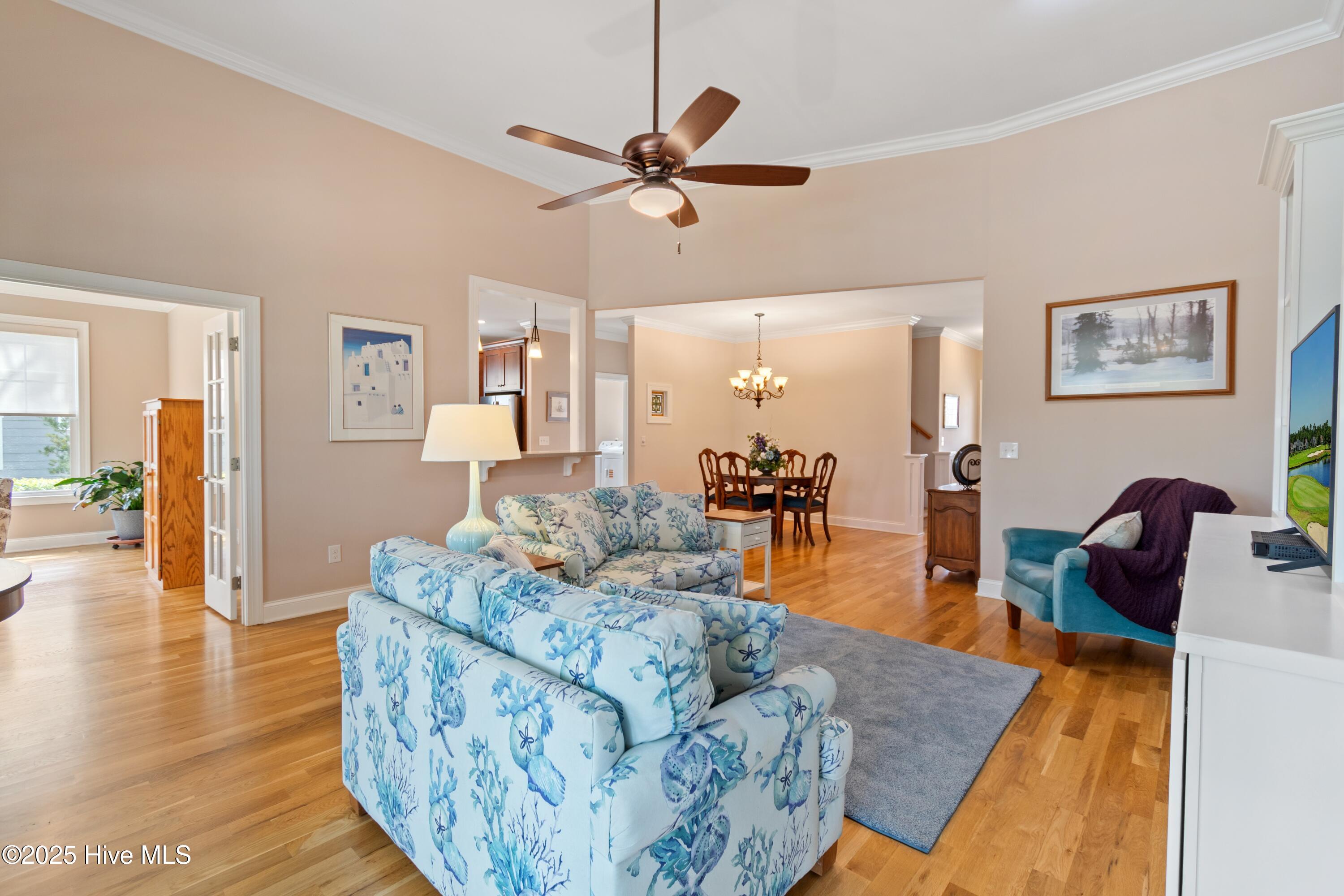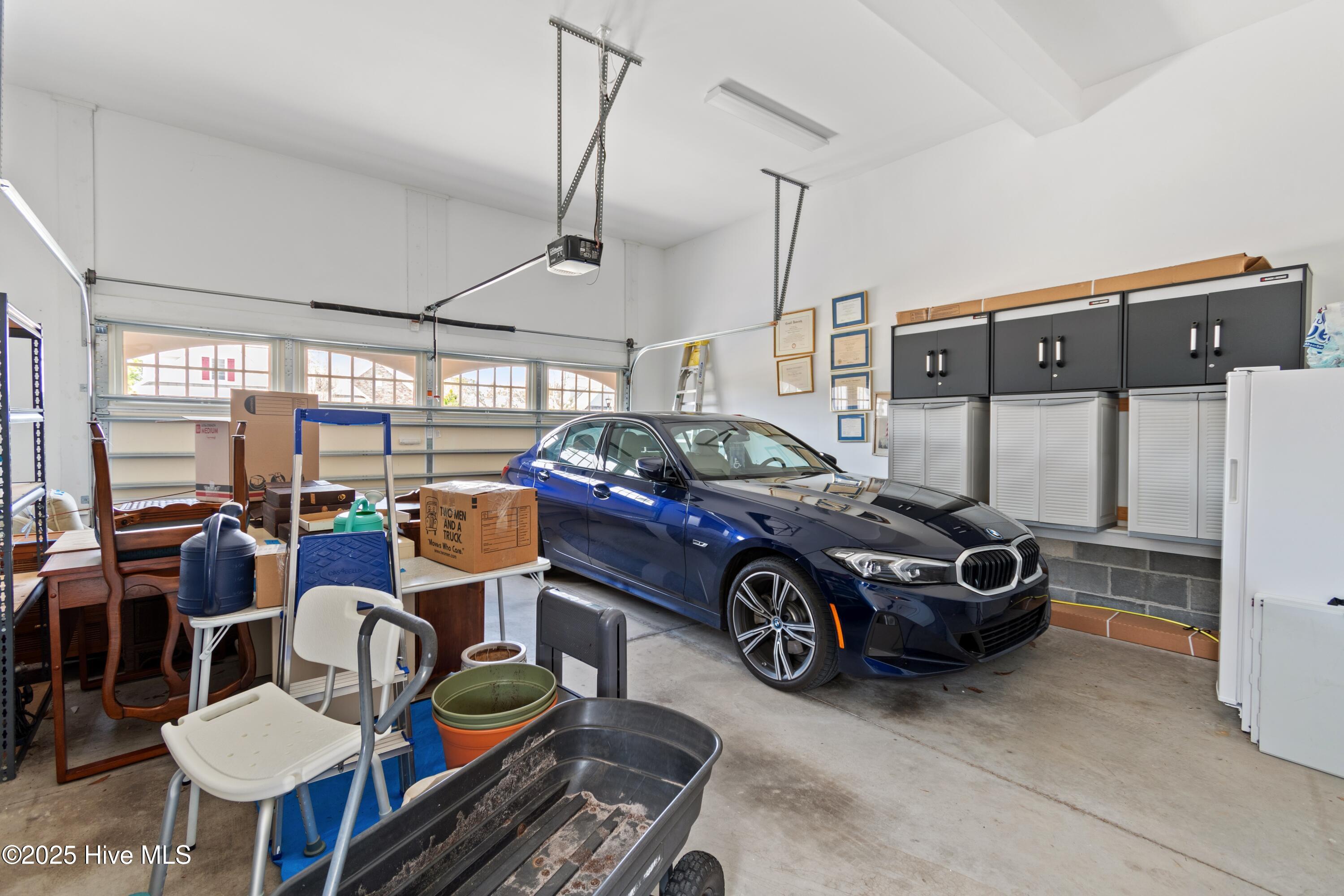 Nestled in the Reserve section of St. James on a wooded lot, this custom built home offers 2 primary suites on the first floor, a large chef's dream kitchen with an abundance of counter space and luxurious cabinetry. The welcoming entry foyer leads into a large living room with a soaring ceiling, built-in bookshelves, and a bank of windows looking out onto a private backyard. The retreat room welcomes with a travertine tiled gas fireplace, 2 walls of windows and a door to the screened porch. The first level office and laundry make this one floor living while 2 more bedrooms, a full bath with walk in shower and large storage closet await on the second floor. The walk in attic offers loads of storage. Built in shelves and storage cabinets in the garage make tool storage neat and tidy. Easy access to Seaside Gate.