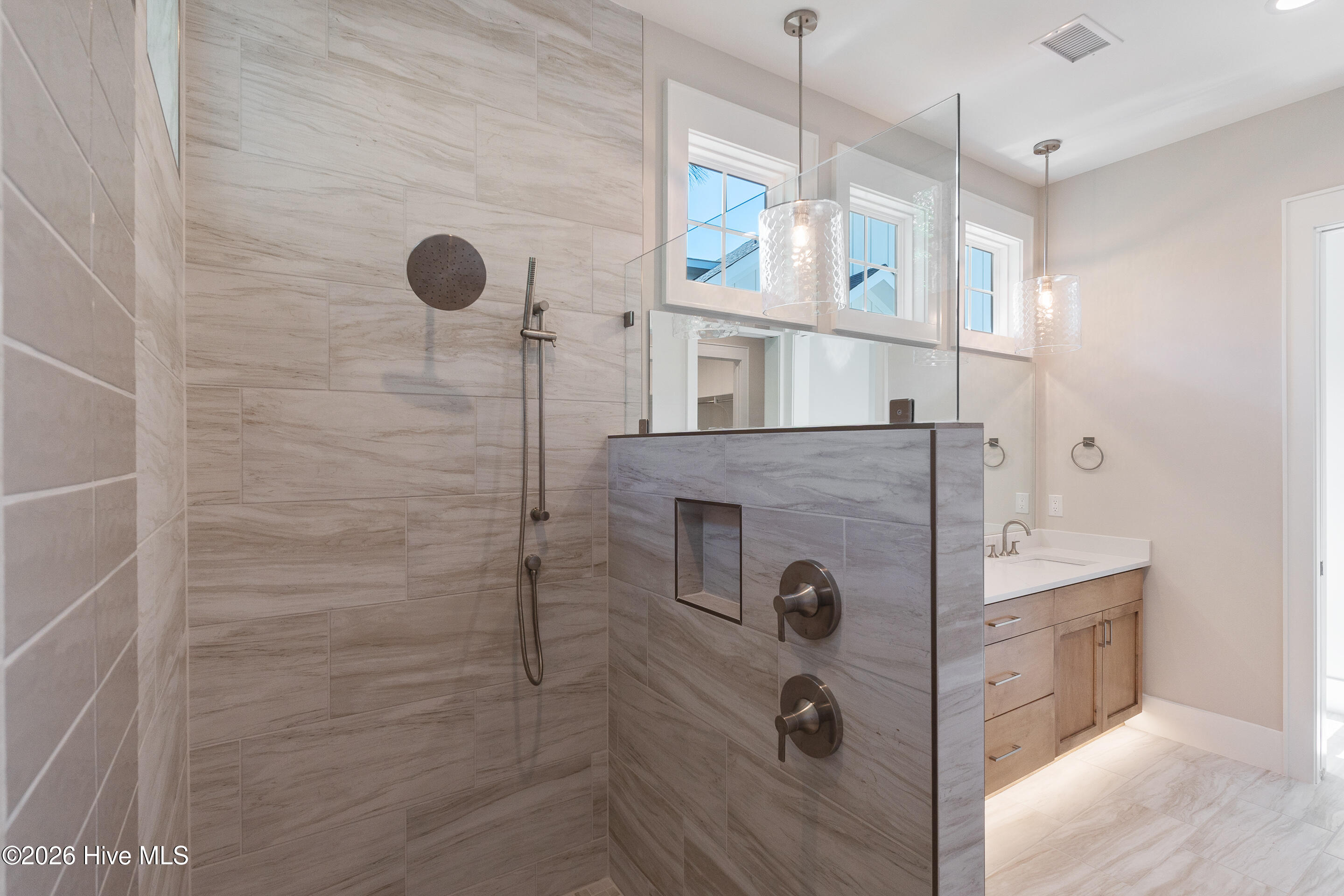 THE ONLY OPPORTUNITY TO LIVE ON THE RESERVE CLUB #18 GREEN. New construction in one of the most sought-after neighborhoods in St. James Plantation, The Reserve. Steps from your door is The Reserve Club, which offers an unrivaled setting in a vibrant community with convenient access. This home boasts 2,767 heated square feet of luxurious living space, including three bedrooms and three baths on the main floor, with upgraded amenities and a custom trim package. The second floor provides one more bedroom and bath, offering a retreat for guests. RiverBrook Builders has carefully crafted these homes with every detail in mind. An Owners' Association is responsible for yard maintenance, leaving you more time to enjoy your new coastal lifestyle. Step inside to discover the elegance of quartz countertops covering every surface, complemented by the warmth of engineered hardwood floors that flow seamlessly from room to room. Indulge your culinary passions in the gourmet kitchen equipped with BOSCH appliances, making meal preparation a pleasure. Included are custom-designed cabinetry with soft-close doors and drawers. The primary suite boasts a zero-entry floor-to-ceiling tiled shower and motion-activated lighting. The architectural shingles, paired with standing-seam metal accents, enhance the exterior's curb appeal and ensure long-lasting durability. Low-E windows, James Hardie fiber-cement siding, fascia, and soffit ensure energy efficiency and durability, while pine tongue-and-groove porch ceilings add a touch of cottage charm. Inside, solid core 8' doors and 10' ceilings on the first floor, custom crown molding, and LED lighting create an ambiance of luxury and sophistication. This home will have an upgraded landscape plan and a rear patio featuring a fire bowl overlooking the 18th green. The seller is offering a $10,000 Introductory social membership to The Clubs at St. James. NOTE: Colors and finishes may vary. Estimated completion late summer 2026. NOTE: Photos depict a finished home, listed home is unfinished; colors and finishes may vary.